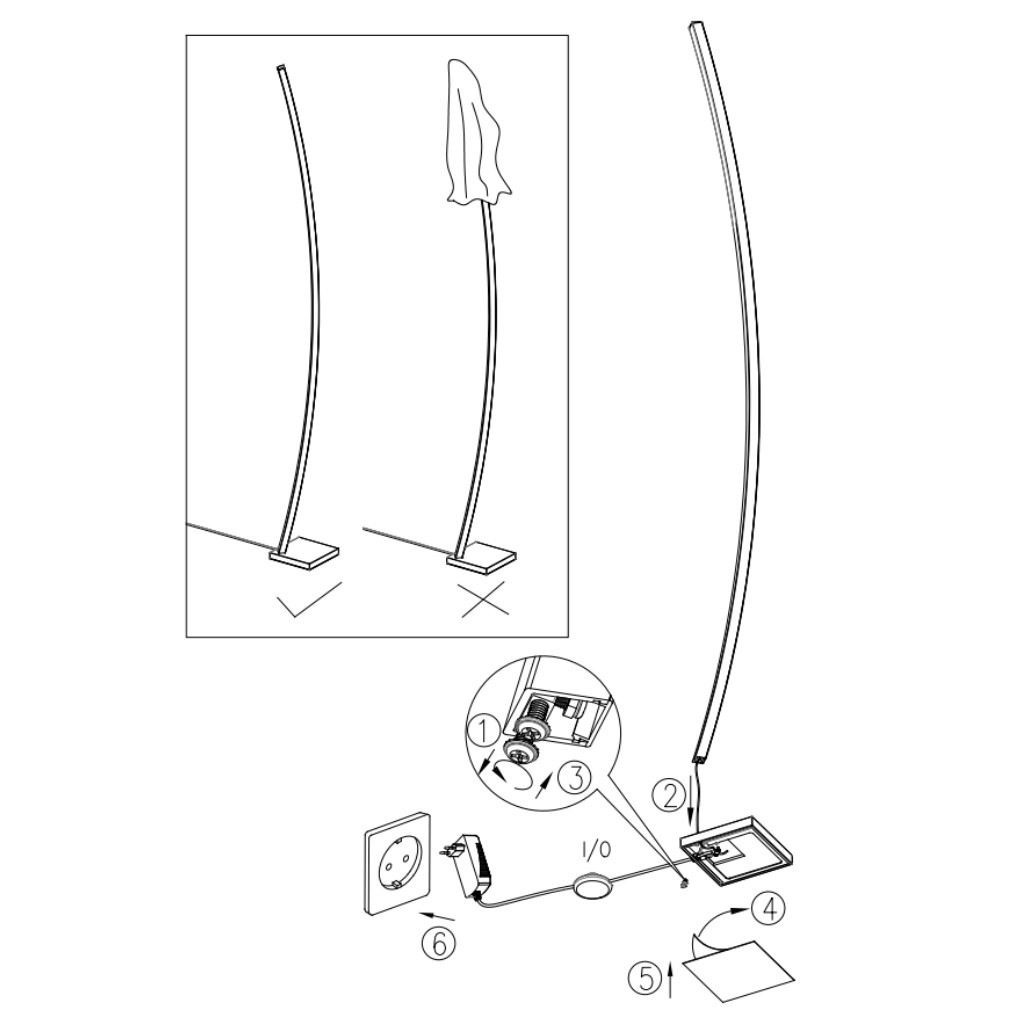 Lampă de podea cu LED și comutator cu pedală, 163 cm, alb-negru - Picacha Eglo 99715, 3000 K, 3500 lm, 29 W