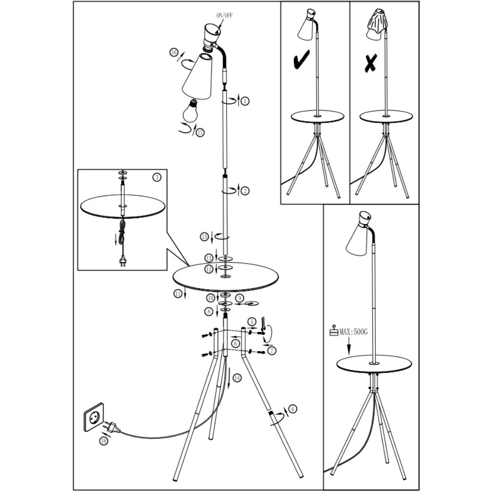 Lampă de podea cu raft, 159 cm, culoare alb-nichel - Policara Eglo 97772, sticlă, cu soclu 1xE27