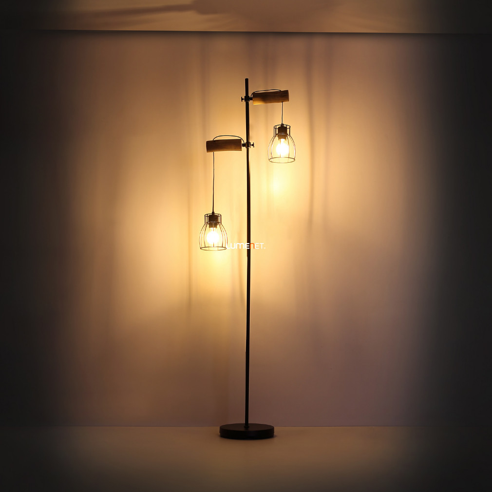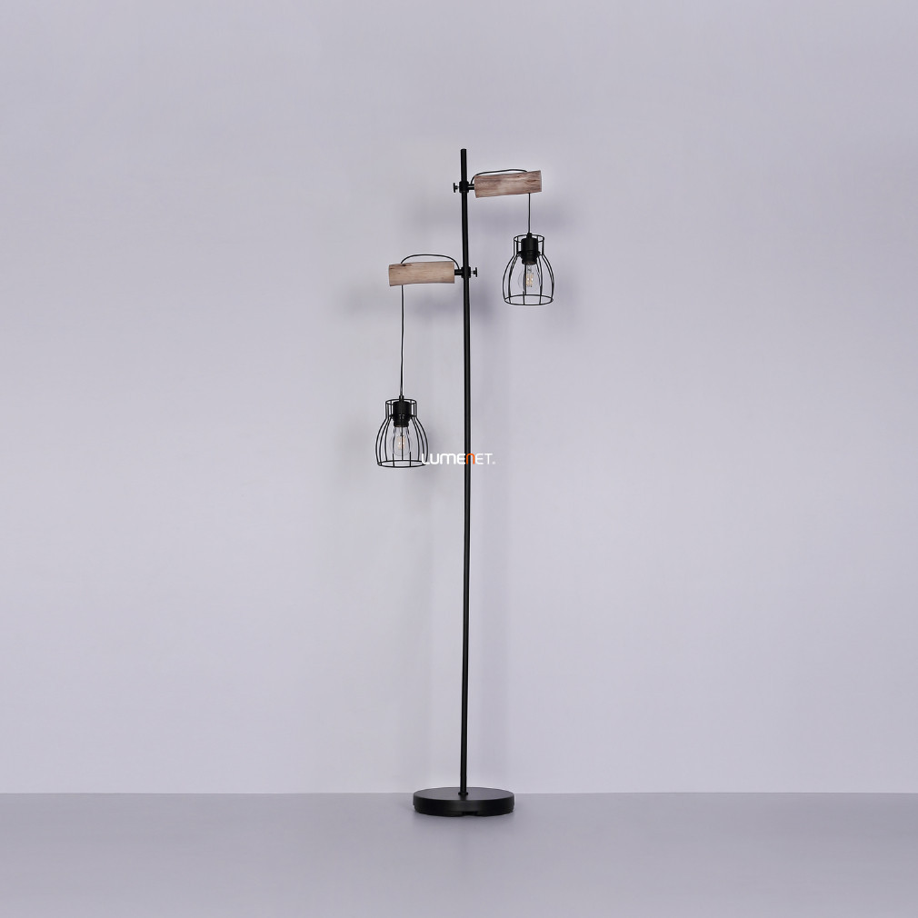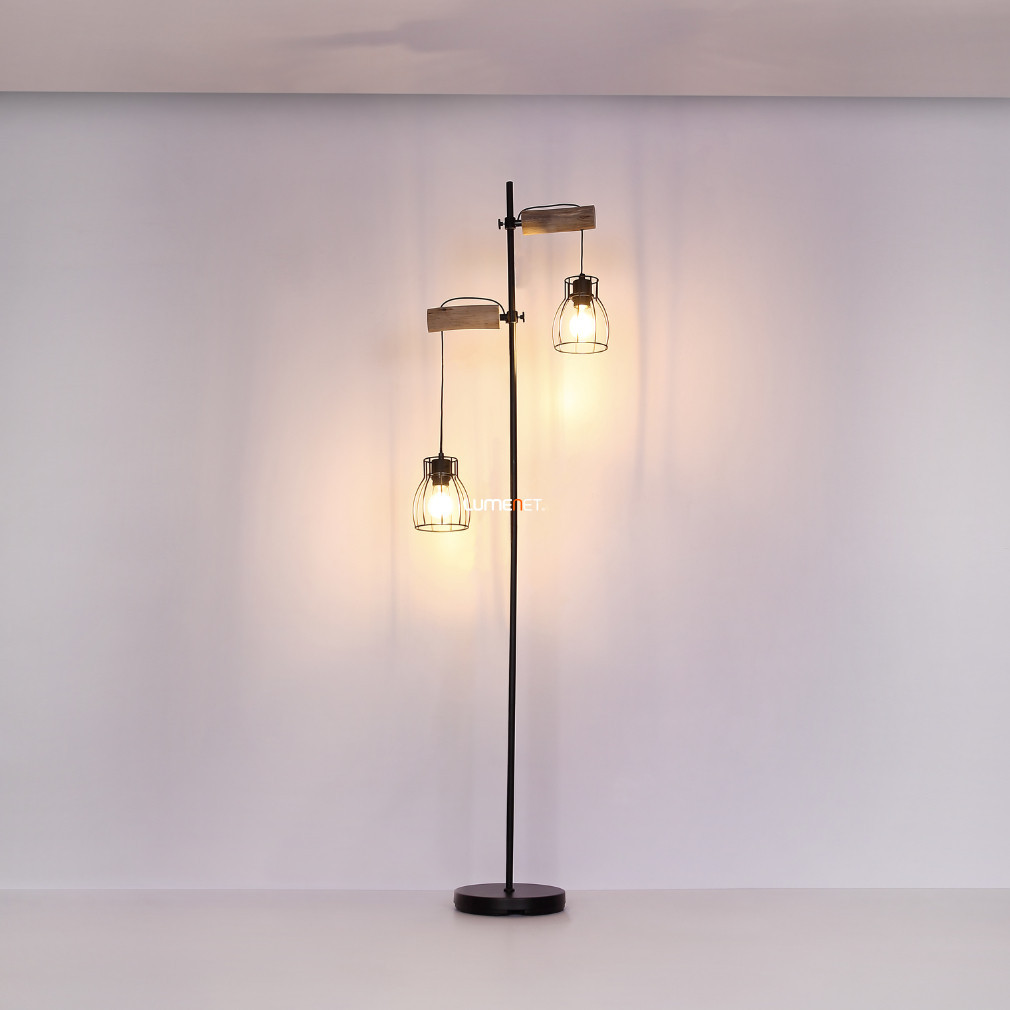 Lampă de podea, lemn negru, 168 cm - Mina Globo 15326-2SN, cu soclu 2xE27