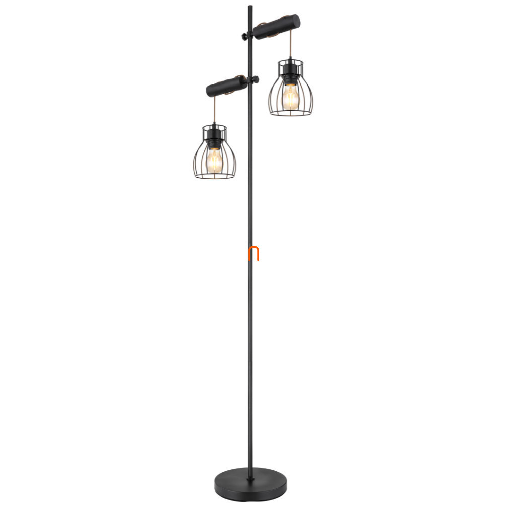 Lampă de podea, neagră, cu două prize (Mina)