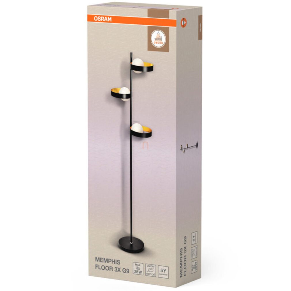 Lampa de podea Osram cu 3 prize, negru (Decor Memphis)