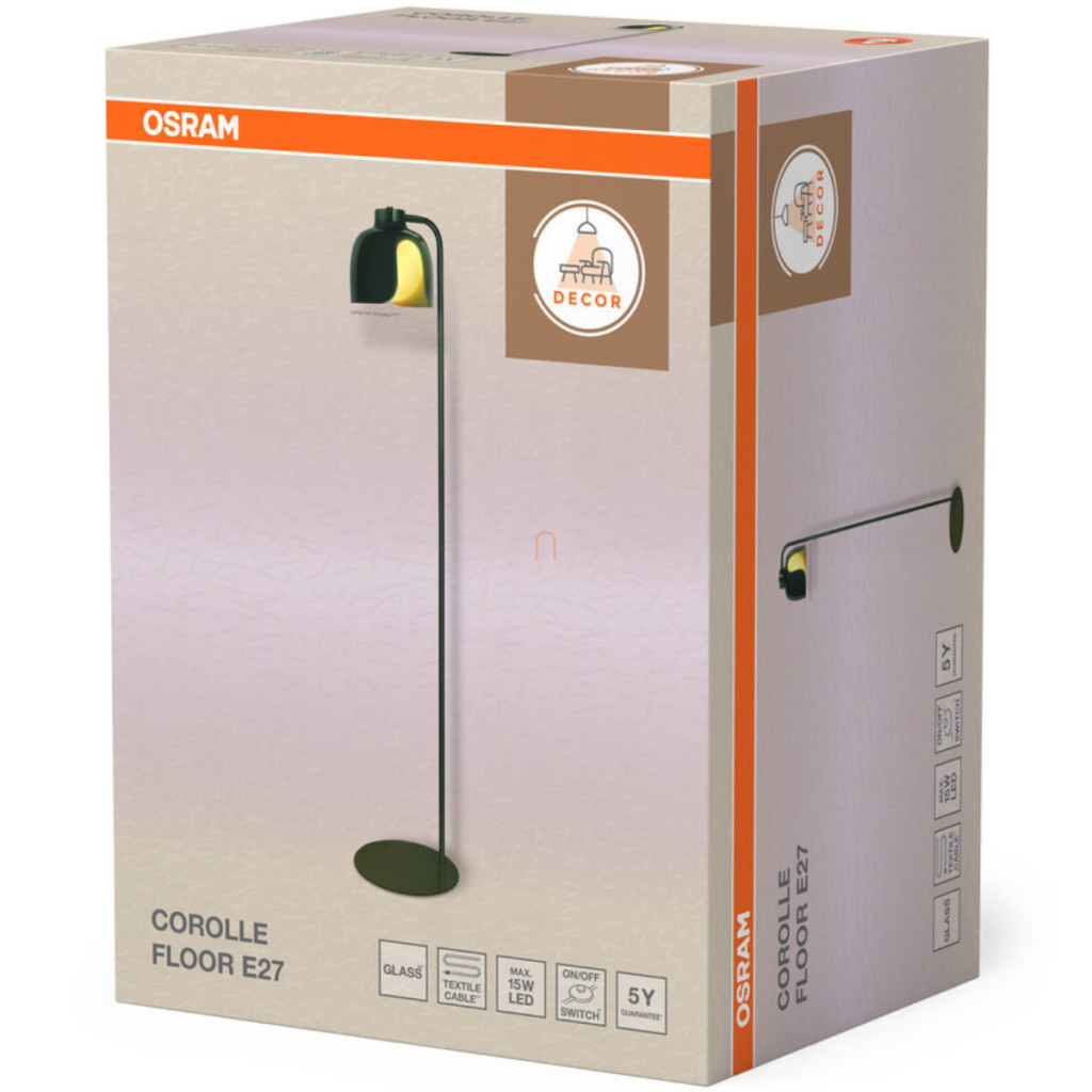 Lampă de podea, verde, 141 cm - Osram Decor Corolle, cu soclu 1xE27, cablu de 1,8 metri, 220-240 V
