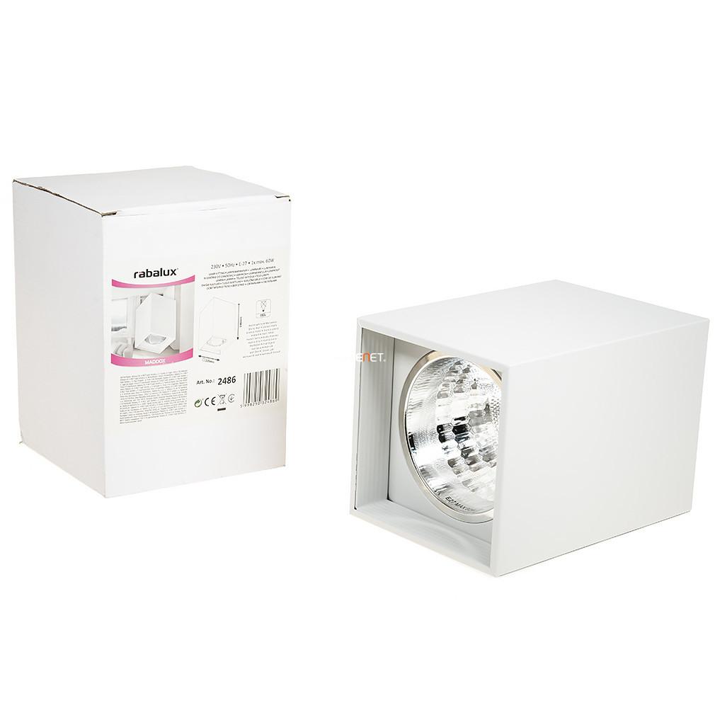 Lampa de tavan Maddox Rábalux 2486 este un corp de iluminat montat pe tavan, cu o înălțime de 19 cm, realizat din metal alb. Produsul are o soclu E27, care poate fi echipat cu o sursă de lumină înlocuibilă. Corp de iluminat nu include o sursă de lumină, astfel încât puterea, fluxul luminos, culoarea luminii și temperatura culorii depind de becul utilizat. Lampa nu este reglabilă și are un grad de protecție IP20, ceea ce o face potrivită pentru utilizare în interior. Produsul cântărește 0,7 kg și are dimensiunile 135 mm lungime, 135 mm lățime și 190 mm înălțime. Dimensiunile ambalajului sunt 14x14x19 cm. Producătorul este Rábalux, iar codul logistic este 2486.