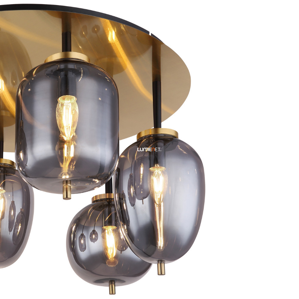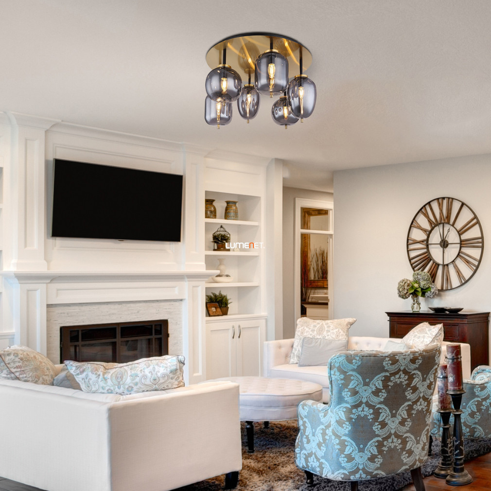 Lampa de tavan Blacky Globo 15345-6DMM este proiectată într-un stil modern, combinând alamă și sticlă fumurie. Lampa are șase socluri E14 care pot fi echipate cu surse de lumină înlocuibile, permițându-vă să alegeți liber fluxul luminos, temperatura culorii și culoarea luminii. Produsul nu este reglabil și are protecție IP20, fiind potrivit pentru utilizare în interior. Diametrul este de 650 mm, înălțimea este de 380 mm, iar greutatea produsului este de 9,98 kg. Dimensiunile ambalajului sunt 68x68x32 cm. Lampa nu include o sursă de lumină; producătorul este Globo.