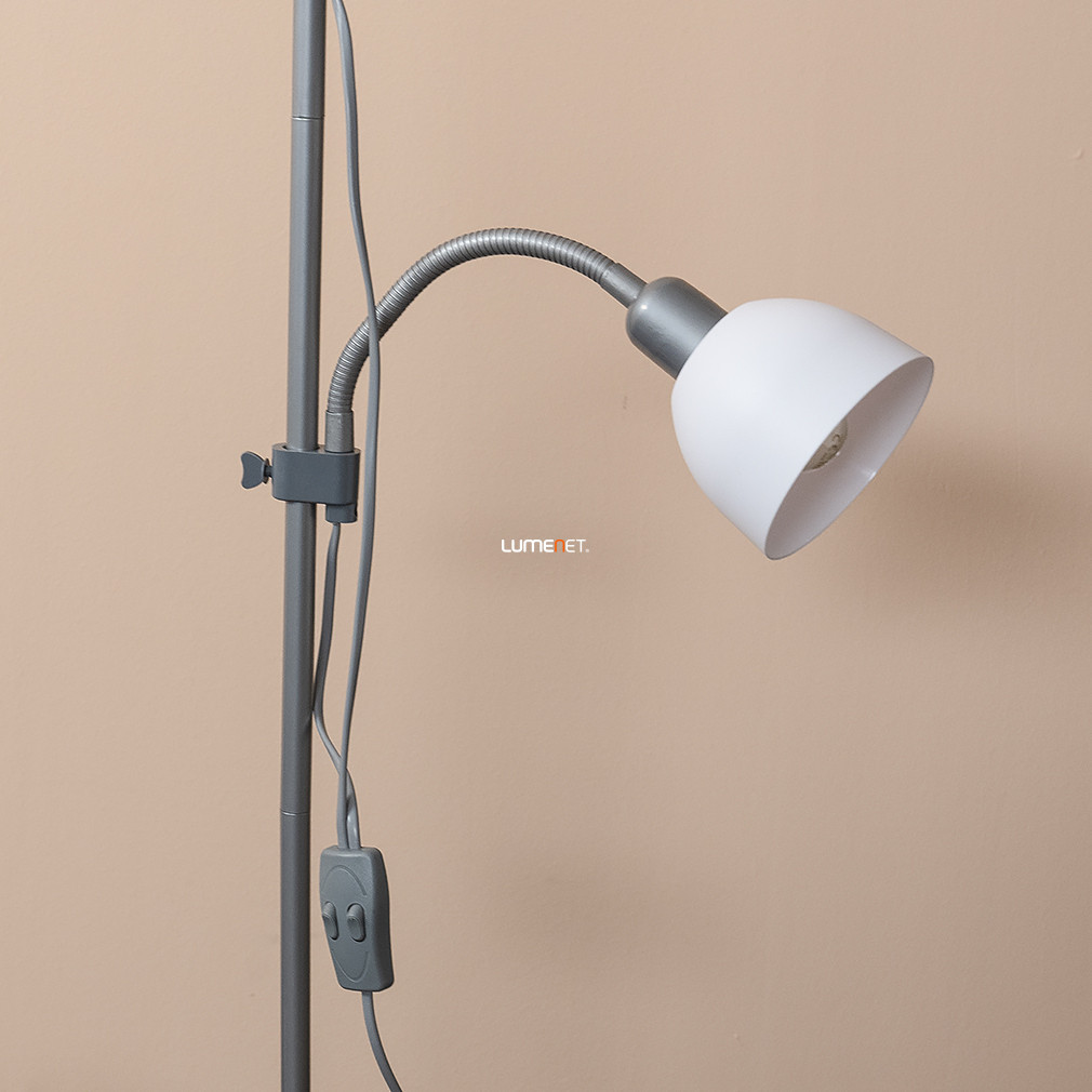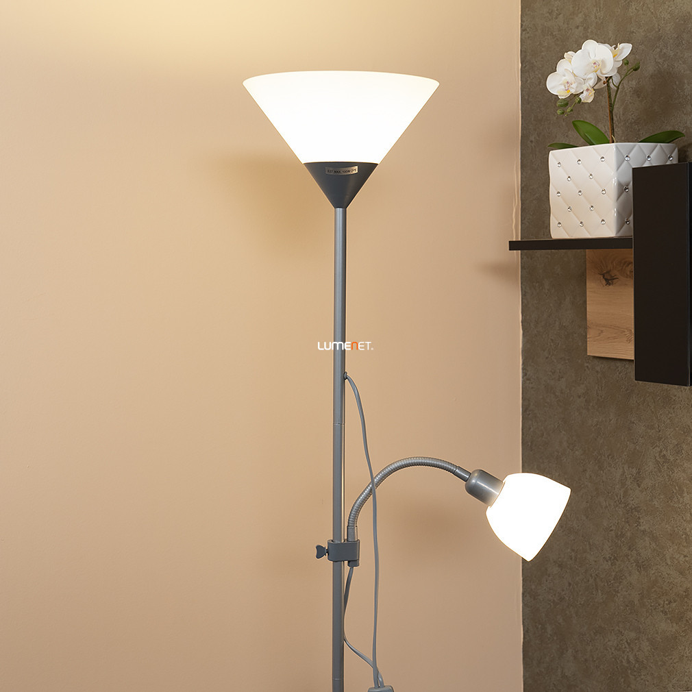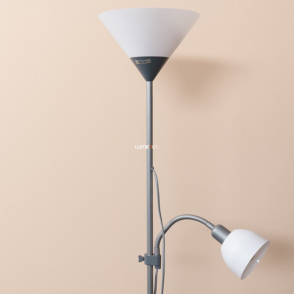 Lampă de tavan cu braț de lectură din argint, 178 cm - Action Rábalux 4028, întrerupător pe cablu, 1xE27+1xE14 soclu