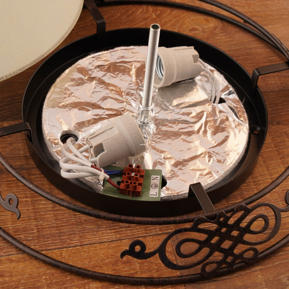 Lampa de tavan Mestre Eglo 86712 este proiectată într-un stil clasic, într-o combinație de culori bej și auriu. Lampa are două socluri E27, care pot fi echipate cu surse de lumină înlocuibile, permițându-vă să alegeți liber puterea luminoasă, puterea și temperatura culorii. Produsul este fabricat din sticlă și oțel, cu un diametru de 395 mm, o înălțime de 133 mm și o greutate de 2,3 kg. Are un grad de protecție IP20, fiind potrivit pentru utilizare în interior. Pachetul nu include o sursă de lumină. Lampa nu este reglabilă. Dimensiunile ambalajului sunt: 12 cm lățime, 42 cm lungime și 41 cm înălțime. Produsul este fabricat de EGLO, cod logistic 86712.