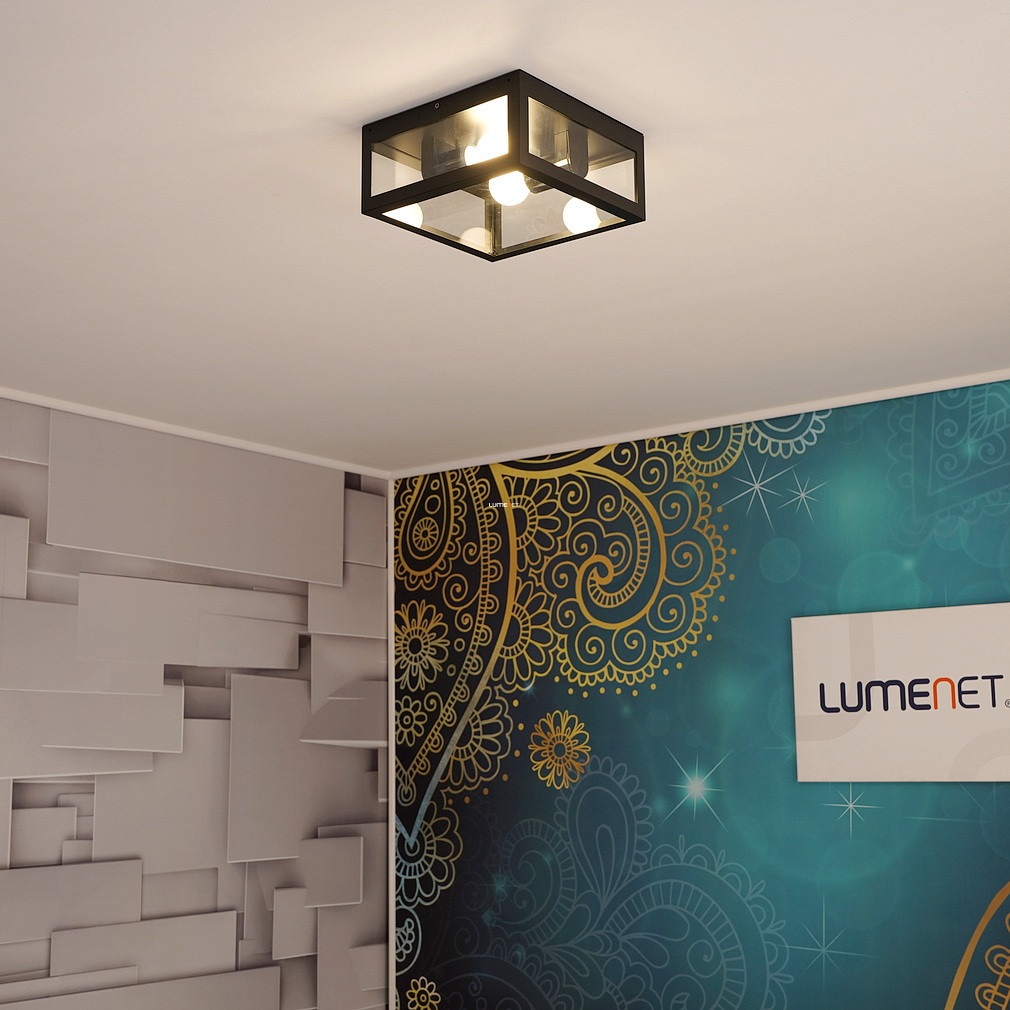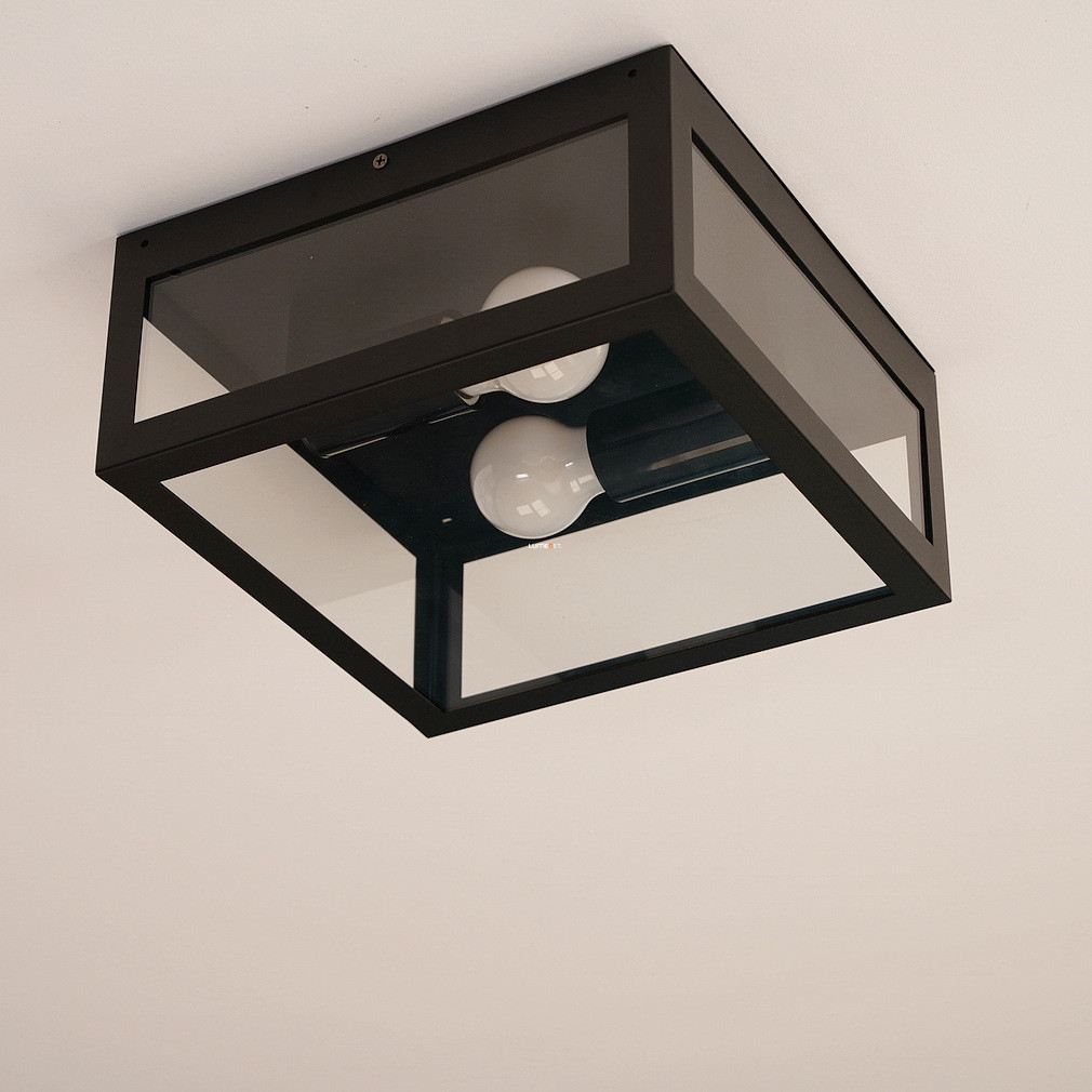 Lampa de tavan Amezola Eglo 99122 are două socluri E27, astfel încât poate fi utilizată cu surse de lumină înlocuibile. Lampa este în stil vintage, realizată din oțel și sticlă, și are culoarea neagră și transparentă. Produsul are protecție IP44, care oferă o protecție sporită împotriva prafului și stropirii cu apă. Lampa nu este reglabilă și nu include surse de lumină. Dimensiunile sale sunt 290 mm lungime, 130 mm lățime și 290 mm înălțime. Produsul cântărește 3,73 kg. Dimensiunile ambalajului sunt 30x14x30 cm. Lampa este fabricată de EGLO.