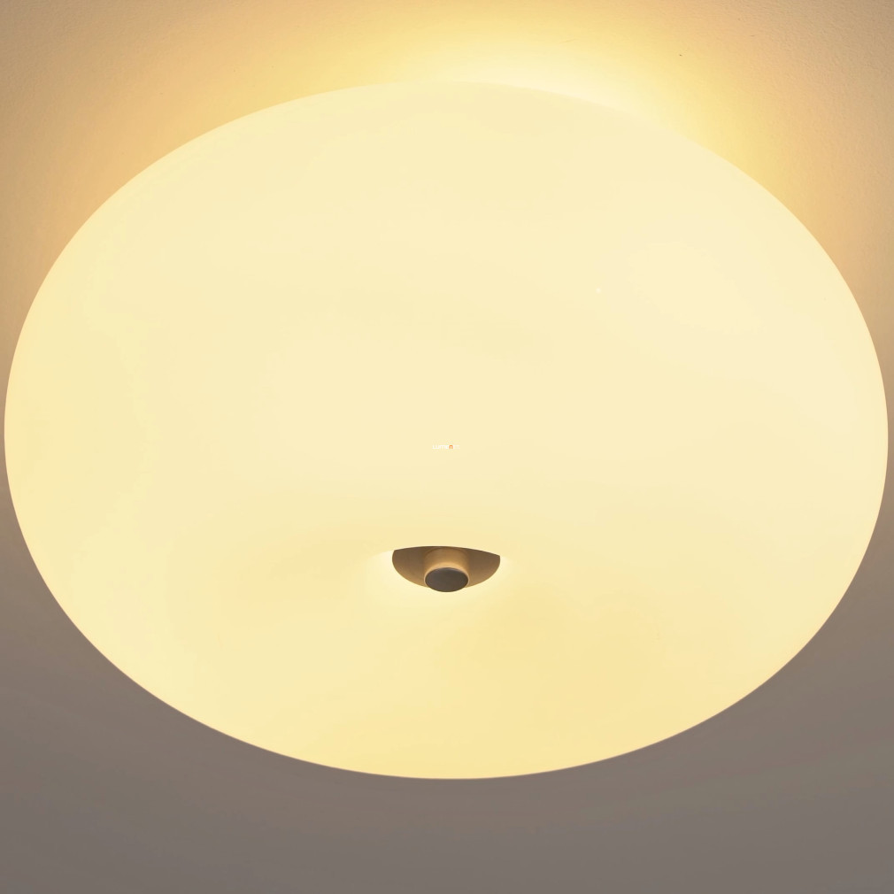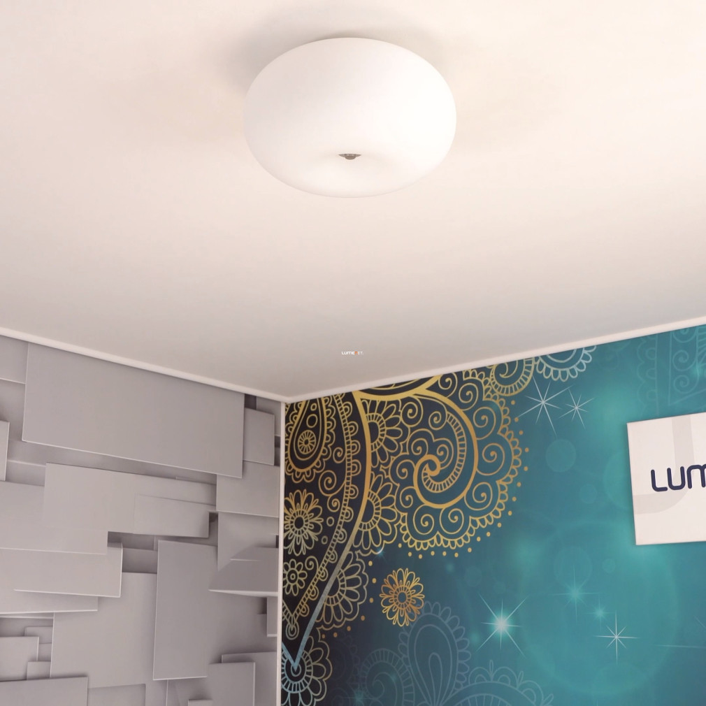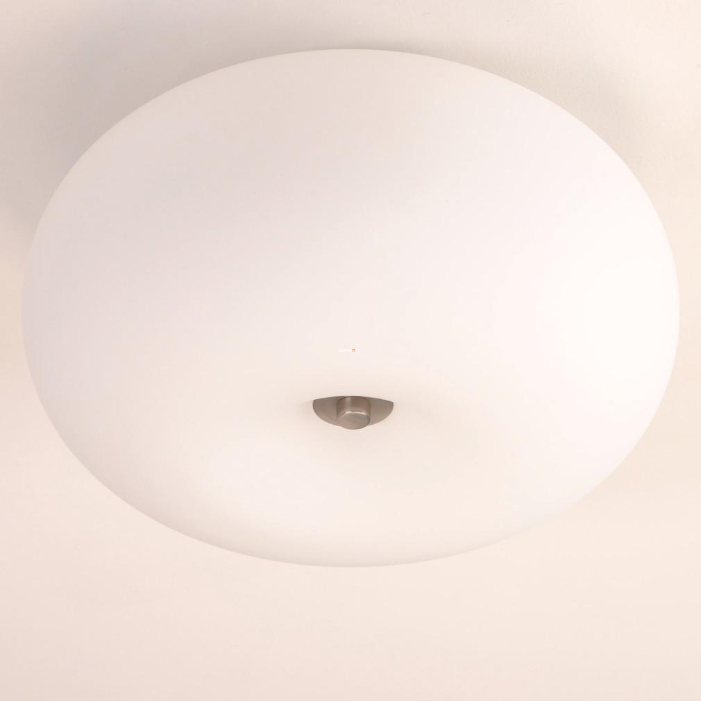 Lampa de tavan Optica Eglo 86812 se potrivește în interioarele moderne datorită designului contemporan și finisajului alb. Lampa are două socluri E27, care pot fi echipate cu surse de lumină înlocuibile, permițând reglarea fluxului luminos, a culorii luminii și a temperaturii culorii în funcție de necesități. Lampa este fabricată din sticlă și nichel, cu un diametru de 350 mm și o înălțime de 210 mm. Clasa de protecție IP20 asigură utilizarea în interior. Produsul nu include o sursă de lumină și nu are funcție de reglare a intensității luminoase. Ambalajul măsoară 42x42x23 cm, iar lampa cântărește 2,95 kg. Fabricat de EGLO.