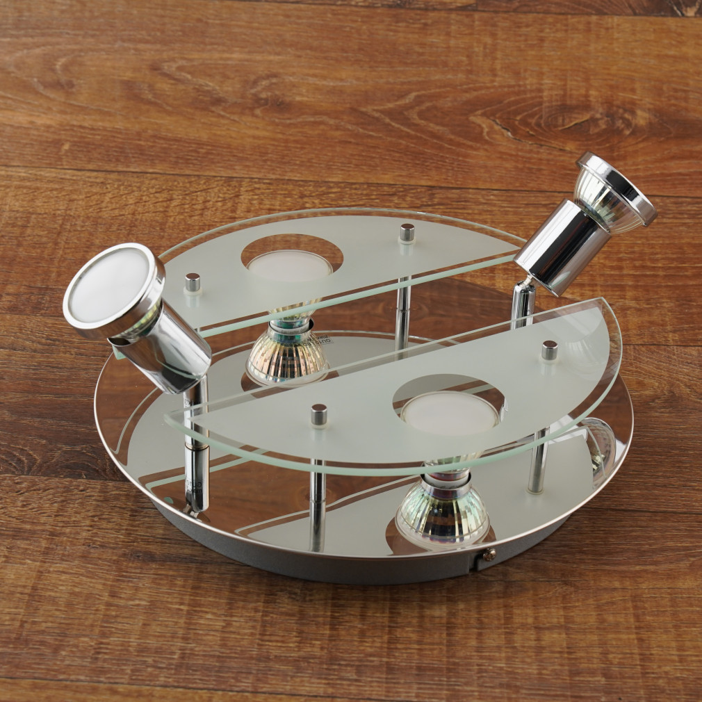 Această lampă modernă de tavan, de culoare cromată, cu patru socluri, este alegerea perfectă pentru iluminarea elegantă a oricărei camere din casa dumneavoastră. Lampa de tavan cu patru socluri și finisaj cromat este o soluție elegantă și modernă, care poate fi punctul central al oricărei camere. Combinația dintre oțel și sticlă asigură nu numai durabilitate, ci și un aspect sofisticat. Lampa are patru socluri GU10, permițându-vă să utilizați diferite surse de lumină care pot fi înlocuite, astfel încât să puteți adapta întotdeauna iluminatul la nevoile dvs. actuale. Lampa are un diametru de 290 mm și o înălțime de 100 mm, ceea ce reprezintă dimensiunea ideală pentru majoritatea încăperilor. Datorită designului său modern, se potrivește perfect în interioarele contemporane, iar culoarea cromată emană eleganță. Lampa este ușor de instalat, iar pachetul include sursele de lumină necesare, astfel încât să vă puteți bucura imediat de lumina oferită de lampă. O caracteristică specială a acestui produs este că sursele de lumină sunt înlocuibile, astfel încât să puteți utiliza întotdeauna cea mai recentă tehnologie și să reglați intensitatea luminii și temperatura culorii în funcție de nevoile dvs. Această lampă nu este doar funcțională, ci oferă și o experiență estetică care va ilumina fiecare colț al casei dvs.