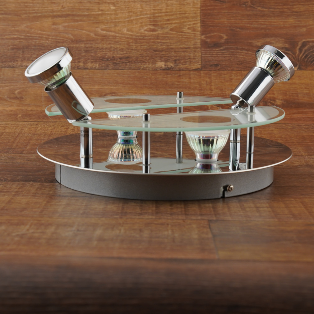 Lampa de tavan Cabo Eglo 93085 are patru socluri GU10 care pot fi echipate cu surse de lumină înlocuibile. Lampa are un stil modern, finisaj cromat și este fabricată din oțel și sticlă. Produsul are un diametru total de 290 mm, o înălțime de 100 mm și un grad de protecție IP20, fiind potrivit pentru utilizare în interior. Pachetul include sursele de lumină necesare, iar corpul de iluminat cântărește 1,99 kg. Codul logistic al produsului este 93085 și este fabricat de EGLO.