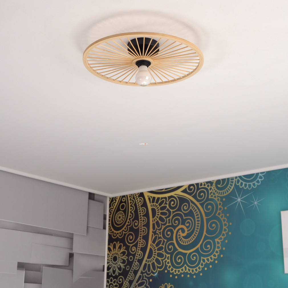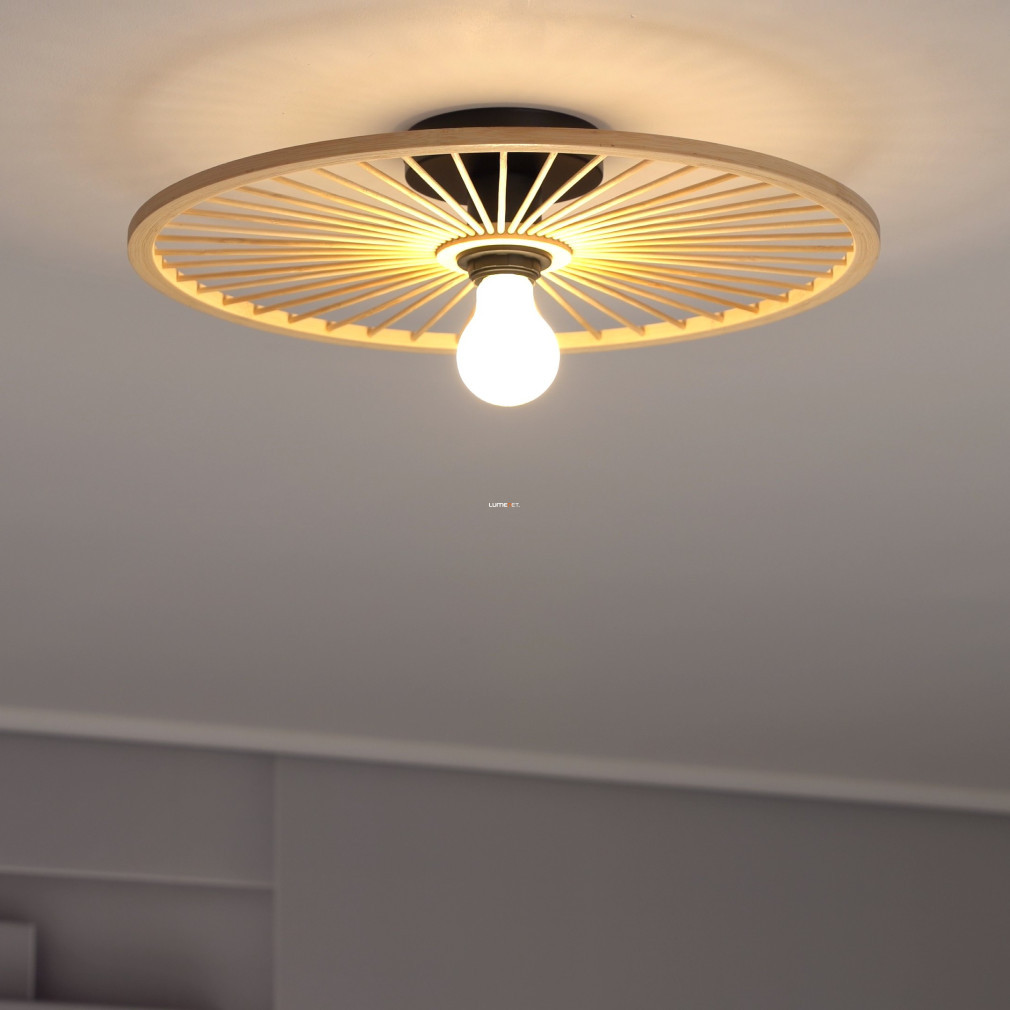 Lampa de tavan din lemn Leominster Eglo 43883 este un corp de iluminat cu aspect modern, realizat din oțel și lemn, cu un singur soclu E27. Lampa are un diametru de 450 mm și o înălțime de 90 mm, fiind ideală pentru iluminatul general în încăperi mici și medii. Produsul este disponibil într-o combinație de culori negru și lemn natural, care conferă un stil curat interiorului. Corpul de iluminat nu include o sursă de lumină, astfel încât utilizatorul este liber să aleagă o sursă de lumină E27 cu puterea, temperatura culorii și fluxul luminos dorite. Gradul de protecție IP20 face ca produsul să fie potrivit pentru utilizare în interior. Dimensiunile ambalajului sunt 46x46x11 cm, iar lampa cântărește 0,455 kg. Producătorul este EGLO, iar codul logistic este 43883.