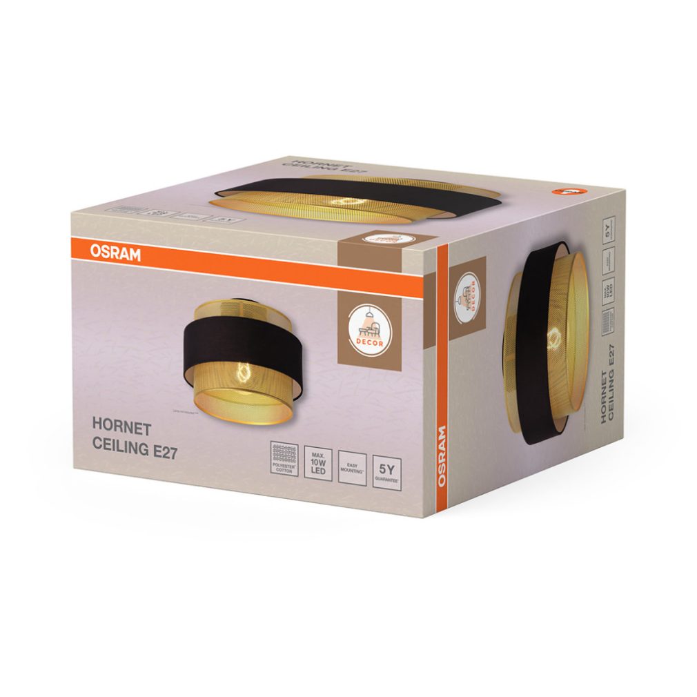 Lampă de tavan în negru și auriu - Osram Decor Hornet, cu soclu 1xE27, 220-240 V