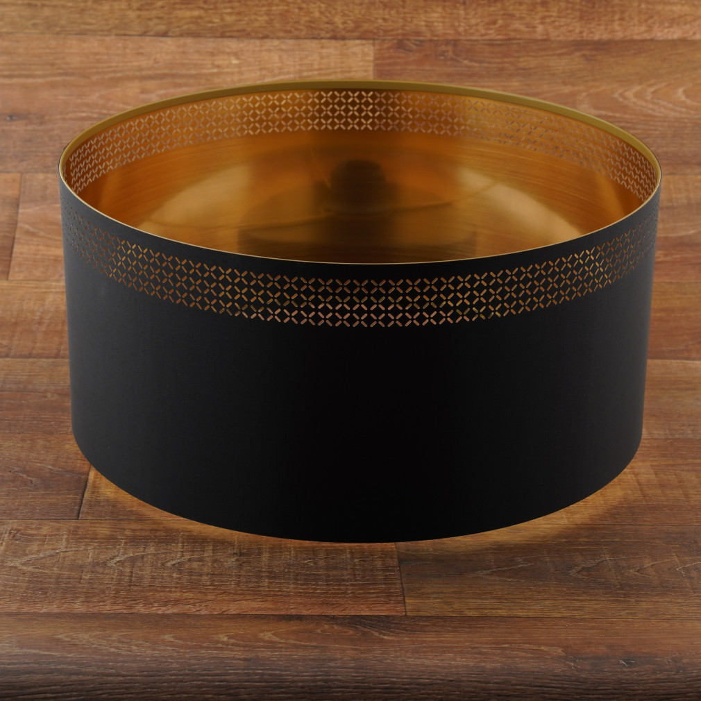 Această lampă de tavan neagră și aurie va face orice cameră specială datorită aspectului său elegant și sursei de lumină înlocuibile. Combinația de culori negru și auriu a lămpii de tavan emană eleganță modernă, care poate fi punctul central al oricărei camere. Combinația de oțel și materiale textile asigură nu numai durabilitate, ci și un aspect elegant. Lampa are un diametru de 475 mm și o înălțime de 240 mm, fiind alegerea ideală pentru iluminarea spațiilor mai mari. Lampa are un soclu E27, care vă permite să înlocuiți sursa de lumină, astfel încât să puteți alege întotdeauna luminozitatea și temperatura culorii care se potrivesc nevoilor dvs. Deși lampa nu include o sursă de lumină, acest lucru vă oferă posibilitatea de a alege sursa de lumină potrivită gusturilor dvs. Lampa nu este reglabilă, dar sursele de lumină înlocuibile o fac ușor de adaptat la diferite nevoi de iluminat. Stilul modern al lămpii se potrivește perfect în interioarele contemporane, iar combinația de culori negru și auriu creează o atmosferă specială. Lampa este ușor de instalat, astfel încât să vă puteți bucura rapid și ușor de avantajele noii dvs. iluminări.