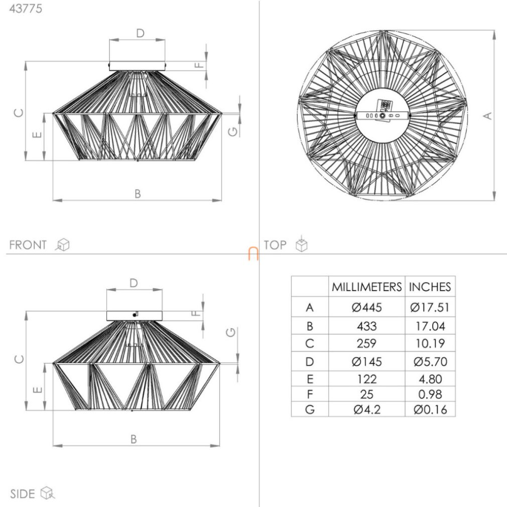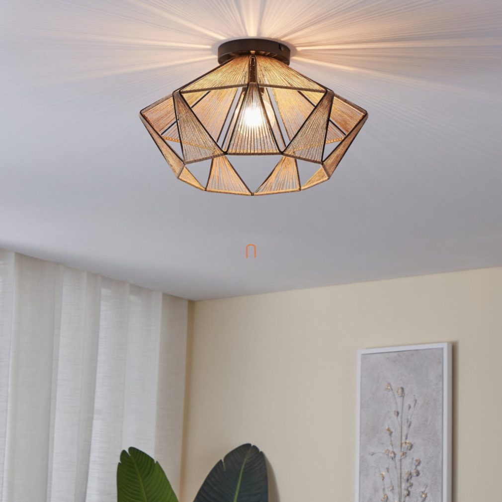 Lampa de tavan Adwickle Eglo 43775 are un design modern în stil etnic, care subliniază caracterul spațiilor interioare prin combinația de culori negru și maro. Lampa este fabricată din oțel și țesătură, asigurând o structură durabilă și un aspect estetic. Este echipată cu un soclu E27, care permite utilizarea surselor de lumină înlocuibile, astfel încât fluxul luminos, culoarea luminii și temperatura culorii depind de becul selectat. Lampa nu este reglabilă și are un grad de protecție IP20, ceea ce o face potrivită pentru utilizare în interior. Diametrul său este de 445 mm, înălțimea este de 260 mm, iar greutatea este de 0,86 kg. Dimensiunile ambalajului sunt: 45 cm lățime, 45 cm lungime și 24 cm înălțime. Produsul este fabricat de EGLO și nu include o sursă de lumină.