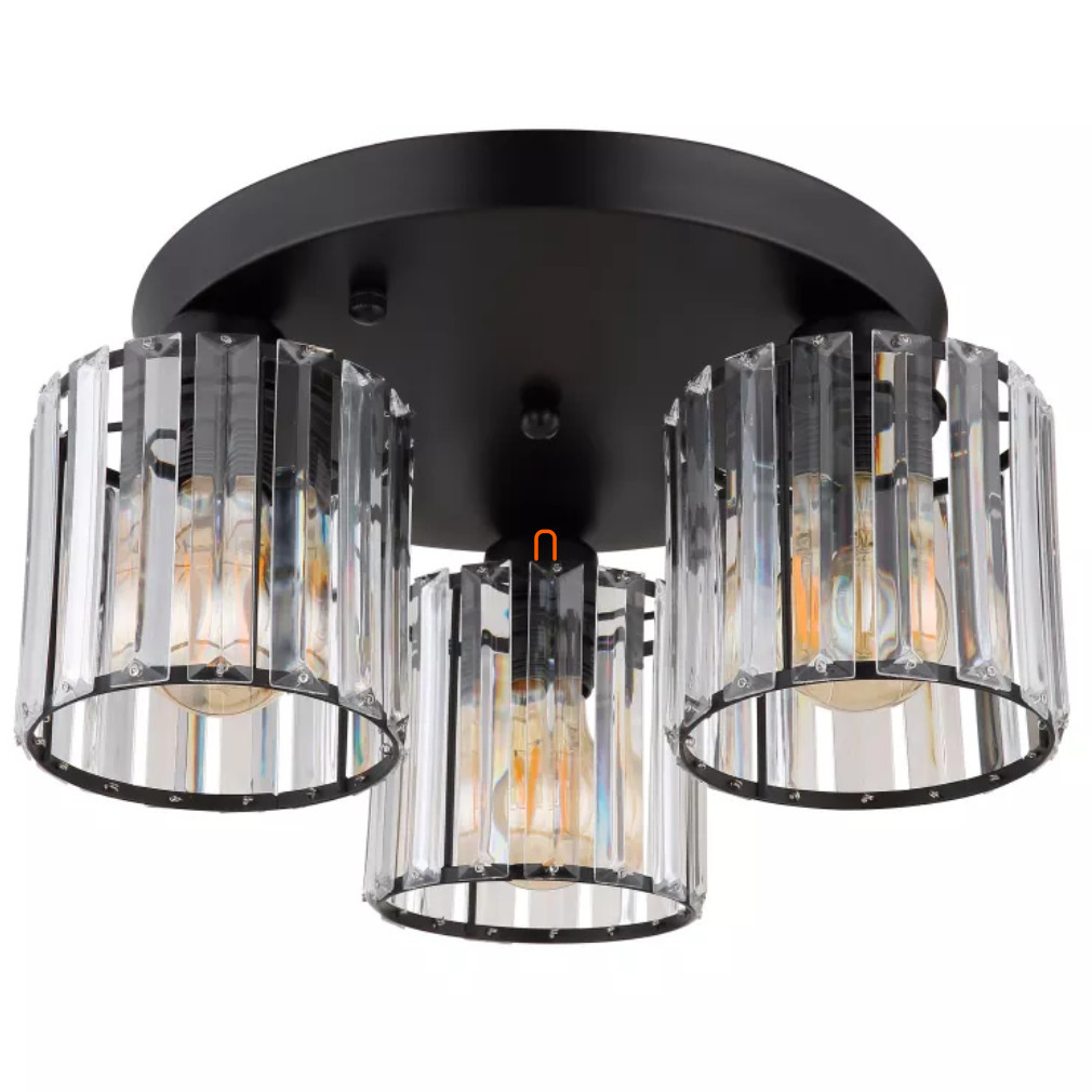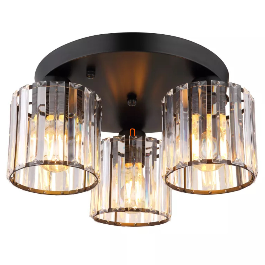 Lampa prismatică de tavan Jordana Globo 15742-3D are trei socluri E27, care permit utilizarea surselor de lumină înlocuibile, astfel încât fluxul luminos, temperatura culorii și puterea să poată fi reglate în mod flexibil. Corpul lămpii este fabricat din metal negru mat și cristal acrilic, ceea ce îi conferă un aspect elegant. Lampa are un diametru de 350 mm, o înălțime de 180 mm și un grad de protecție IP20, fiind potrivită pentru utilizare în interior. Produsul nu include o sursă de lumină și are o tensiune nominală de 230 V. Codul logistic al lămpii este 15742-3D și cântărește 1,66 kg. Dimensiunile ambalajului sunt 30x30x24 cm. Producătorul este Globo.