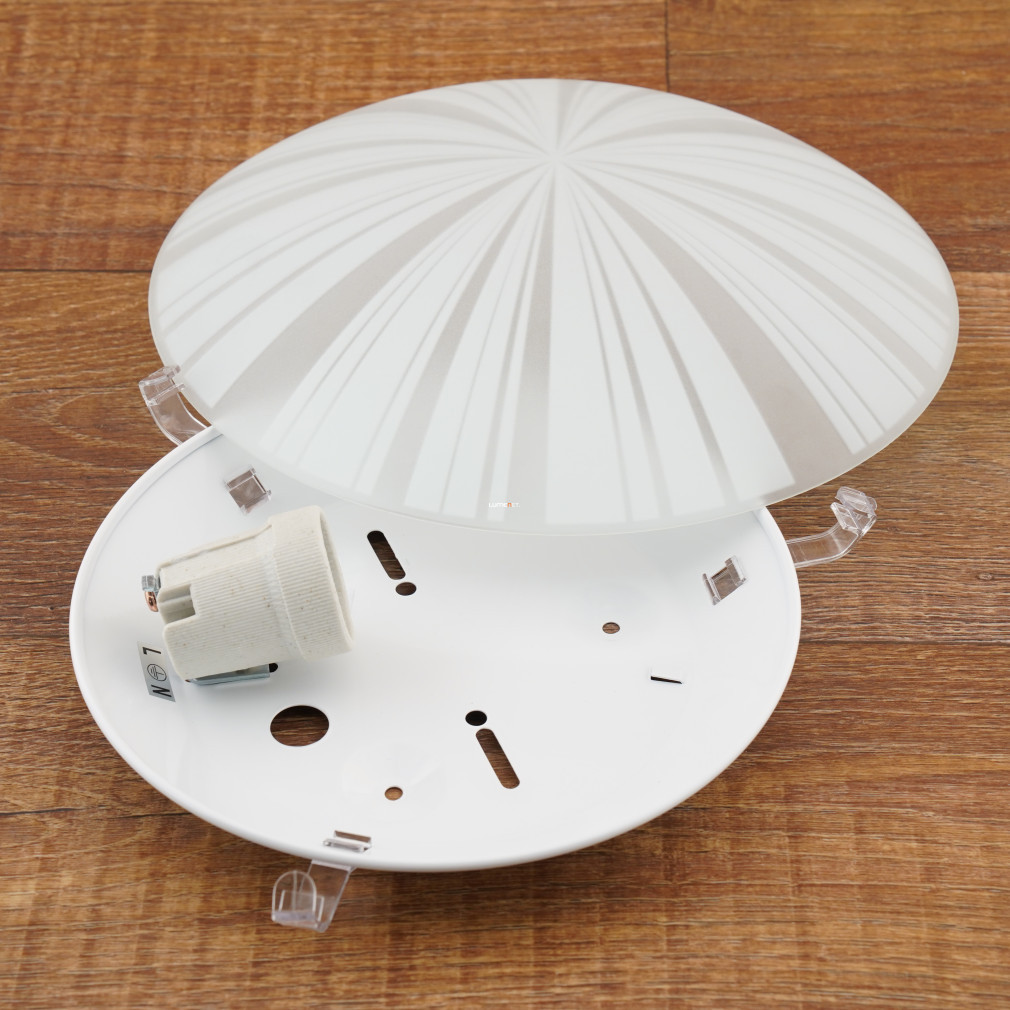 Lampa de tavan Sugármintás, alb-gri – Mars Eglo 89239 este o lampă de tavan în stil modern, concepută pentru iluminatul casnic, cu 1 soclu E27. Lampa este realizată dintr-o combinație de sticlă și oțel și are un diametru de 245 mm. Produsul nu include o sursă de lumină, astfel încât fluxul luminos, culoarea luminii, puterea și temperatura culorii depind de sursa de lumină instalată și înlocuibilă. Lampa nu este reglabilă și are protecție IP20, fiind potrivită pentru utilizare în interior. Dimensiunile ambalajului sunt de 27 cm lungime, 27 cm înălțime și 9 cm lățime, iar produsul cântărește 0,62 kg. Este disponibil la EGLO cu codul logistic Mars Eglo 89239.