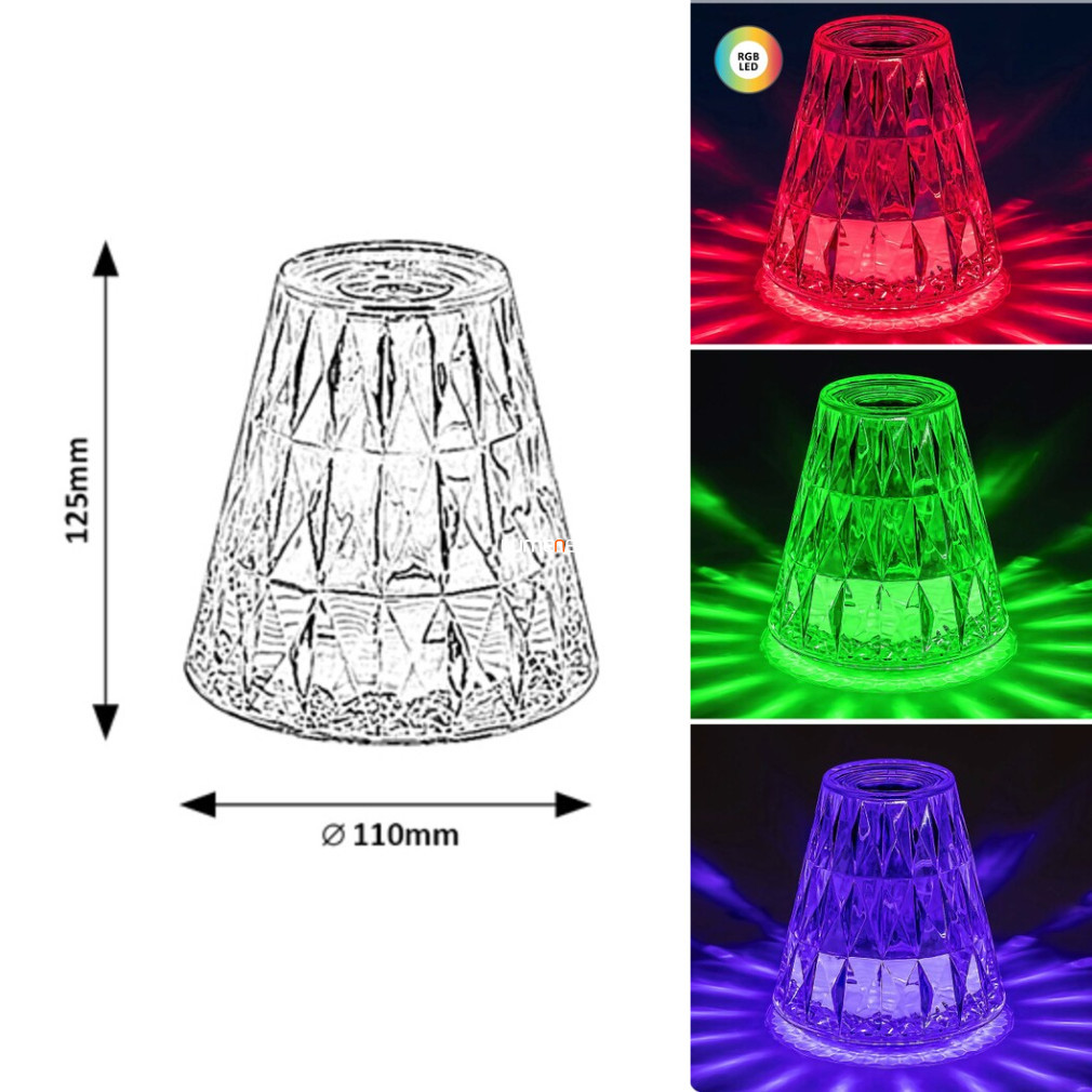 Lampă decorativă de masă, efect cristal lustruit, 12 cm - Siggy Rábalux 76004, USB, comutator tactil, 3000 K+ RGB, 40 lm, 2 W
