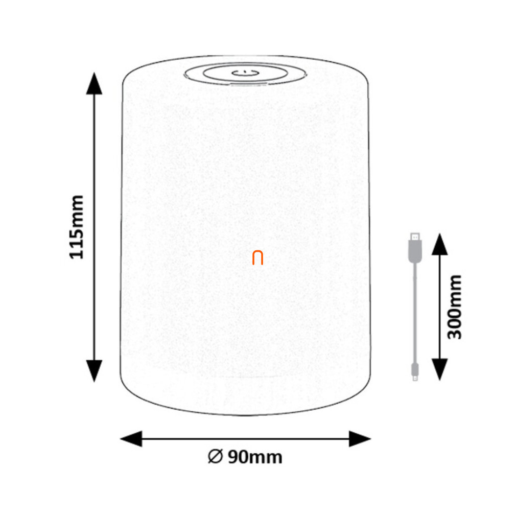 Lampă decorativă LED reglabilă, portabilă 11 cm - Tipy Rábalux 74209, comutator tactil, USB C, cablu de 0,3 m, 3000 K, 50 lm, 0,8 W, 5 V
