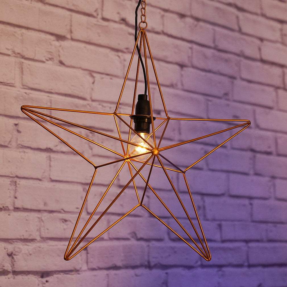 Această lampă în formă de stea, de culoare aurie, suspendată pe un lanț, este o adevărată bijuterie care creează o atmosferă elegantă și magică în orice casă. Forma de stea conferă acestei lămpi un aspect unic, în timp ce culoarea aurie radiază lux și căldură atemporale. Această lampă nu este doar o simplă sursă de lumină, ci și un decor spectaculos care poate împodobi orice interior, fie că este vorba de sufragerie, dormitor sau chiar de sala de mese. Forma de stea aurie umple camera cu lumină caldă, creând o atmosferă cu adevărat confortabilă și primitoare. Suprafața metalică fin lucrată reflectă ușor lumina, creând un efect de iluminare plăcut, aproape magic, atunci când lampa este aprinsă. Această lumină moale este deosebit de potrivită pentru perioada sărbătorilor, dar poate fi folosită în orice zi a anului pentru a aduce o atmosferă romantică și intimă în casa dvs. Suspensia cu lanț face lampa unică, dând impresia că plutește în spațiu, rămânând în același timp stabilă. Această lampă nu este ideală doar pentru iluminatul ambiental, ci funcționează bine și ca sursă centrală de lumină. Fie că o așezați deasupra unei mese romantice sau o utilizați într-un colț de relaxare, eleganța și forma unică a lămpii în formă de stea vor atrage cu siguranță atenția. Culoarea aurie se potrivește, de asemenea, cu o varietate de stiluri, făcând-o un plus excelent pentru interioarele vintage, rustice, moderne sau chiar boeme.Lampa aurie nu este doar atractivă, ci și fabricată din materiale de înaltă calitate, asigurând că își va păstra frumusețea și durabilitatea pe termen lung. Metalul durabil și designul precis asigură că această lampă unică va fi un element decorativ în casa dvs. pentru mulți ani de acum înainte. Este ușor de curățat, astfel încât să îi puteți păstra întotdeauna strălucirea aurie și să o mențineți ca nouă. Această lampă în formă de stea, de culoare aurie, este alegerea perfectă dacă sunteți în căutarea unei surse de lumină cu adevărat