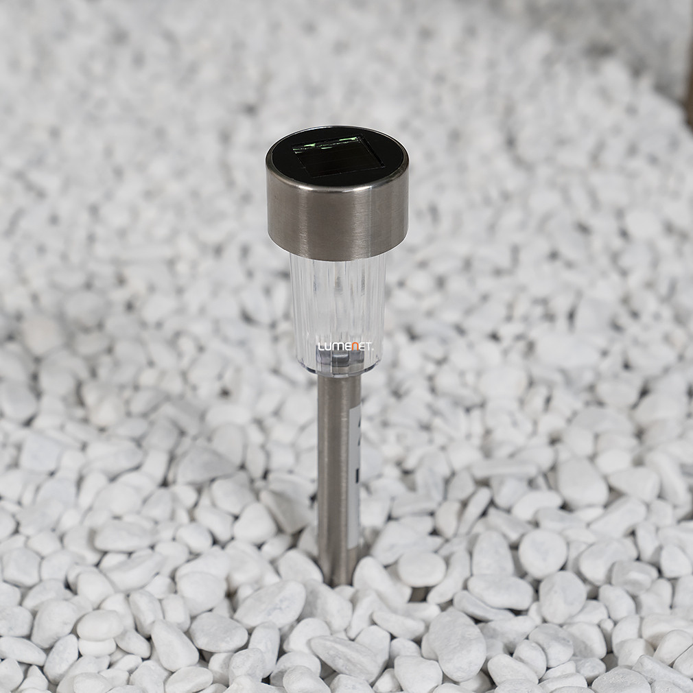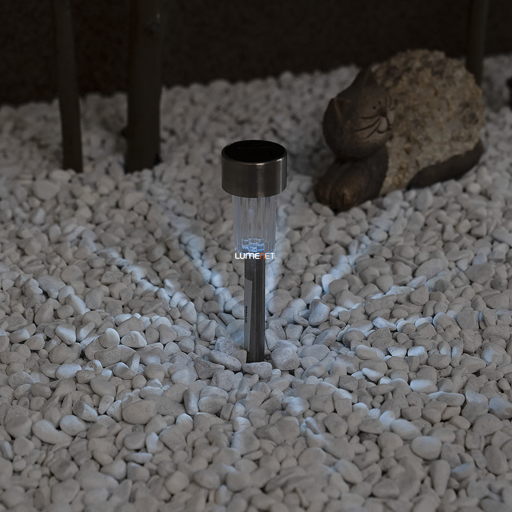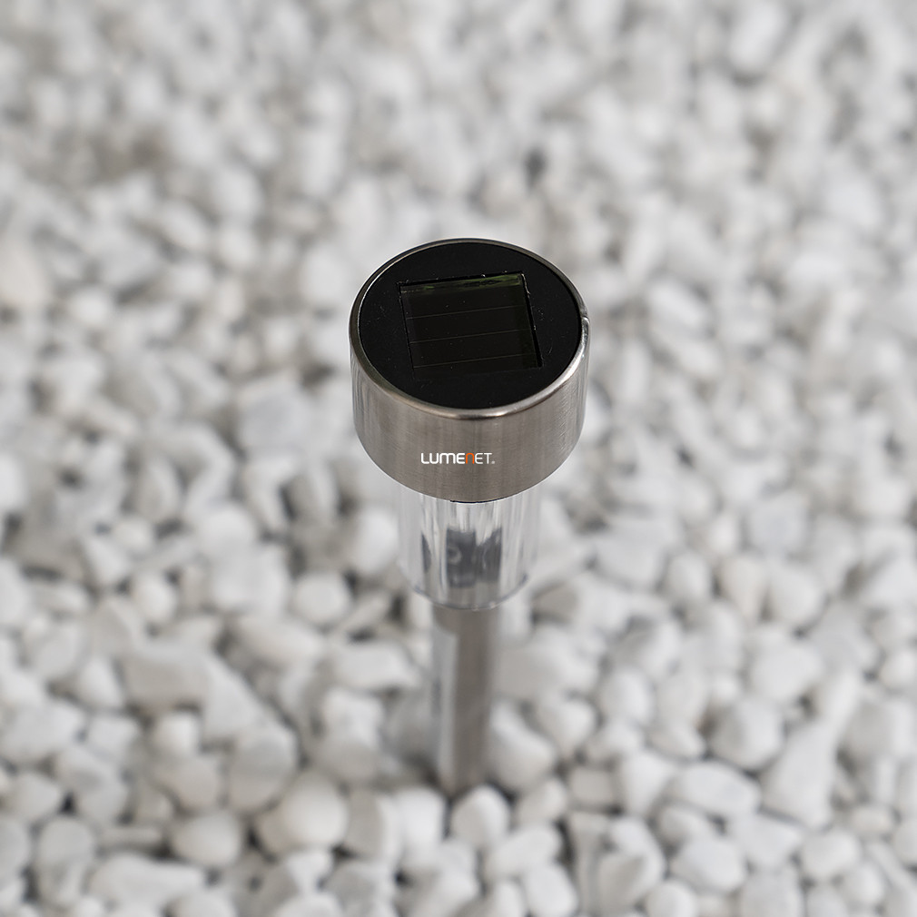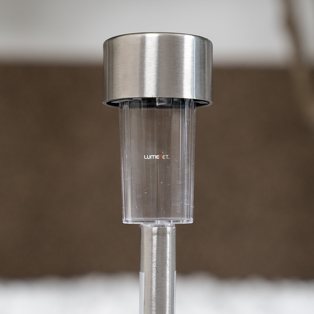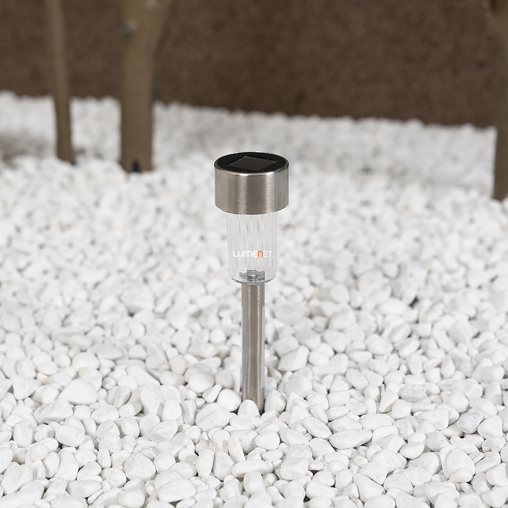 Lampă LED alimentată cu energie solară, de culoare argintie, care poate fi înfiptă în pământ - Solar Rábalux 8366