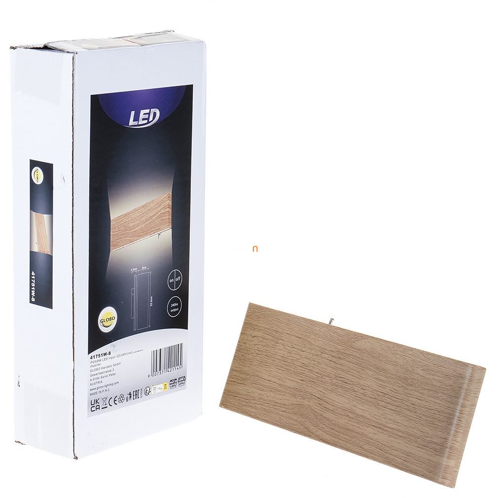 Aplica LED Siegfried Globo 41751W-8 cu efect de lemn oferă un aspect modern și o iluminare eficientă pentru spațiile de locuit. Corp de iluminat este fabricat din aluminiu și plastic, cu finisaj din lemn și opal, creând un efect natural. Modulul LED încorporat de 8 W oferă o lumină albă caldă, cu o temperatură de culoare de 3000 K și un flux luminos de 240 lumeni. Designul de iluminare sus/jos al lămpii permite o distribuție armonioasă a luminii pe perete. Produsul are protecție IP20, fiind potrivit pentru utilizare în interior. Are o durată de viață medie de 20.000 de ore, garantând un consum energetic eficient. Corpul de iluminat are o lungime de 225 mm, o lățime de 45 mm și o înălțime de 80 mm, cântărind 0,57 kg. Sursa de lumină LED este încorporată, nu poate fi înlocuită, iar lampa nu este reglabilă. Siegfried Globo 41751W-8 este alegerea ideală pentru soluții moderne de iluminat pentru locuințe, unde atât designul, cât și funcționalitatea sunt importante.