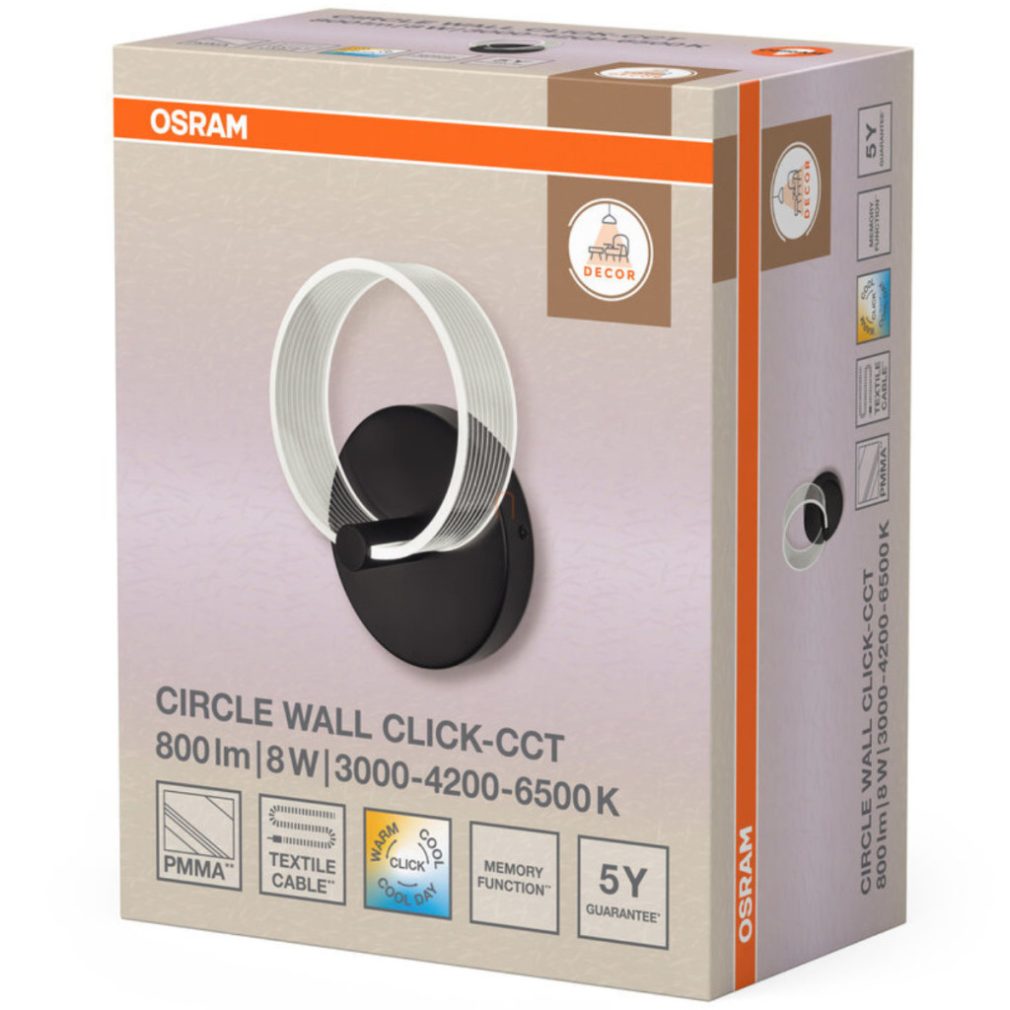 Lampă LED cu intensitate reglabilă, montată pe perete, în stil minimalist - Osram Decor Circle, 3000/4200/6500 K, 370 lm, temperatură de culoare reglabilă, 220-240 V