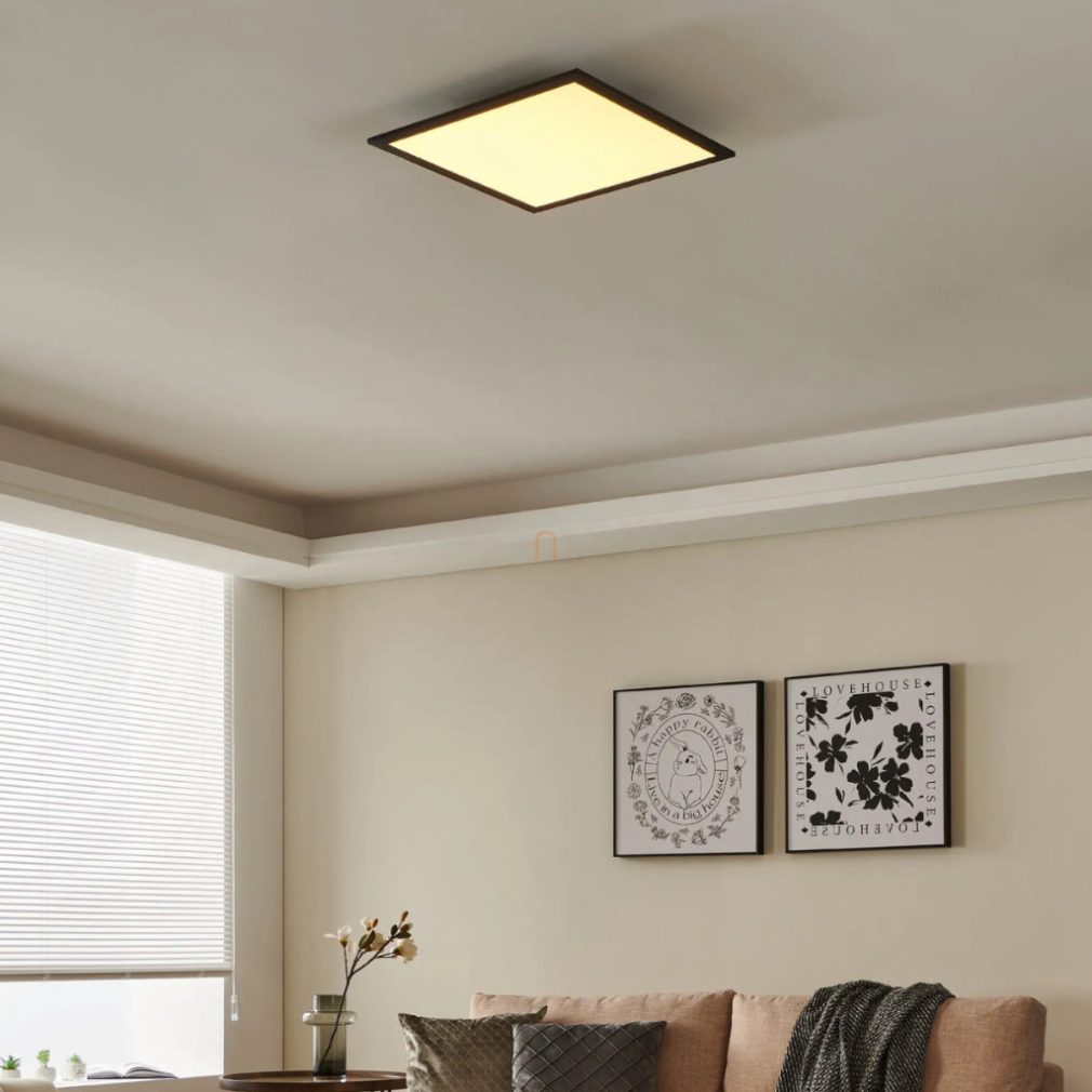 Lampa LED de tavan Salobrena Eglo 900051, cu o putere de 21,5 wați și un flux luminos de 2500 lumeni, este potrivită pentru iluminatul rezidențial. Corpului de iluminat este echipat cu un modul LED alb reglabil, care funcționează într-un interval de temperatură de culoare între 2700 și 6500 Kelvin, permițându-vă să setați atât lumina albă rece, cât și cea caldă. Luminozitatea și temperatura culorii pot fi controlate prin intermediul unei aplicații sau al unei telecomenzi, aceasta din urmă nefiind inclusă. Lampa este fabricată din aluminiu și plastic, într-o combinație de culori alb-negru. Dimensiunile sale de 450x450 mm și înălțimea de 50 mm îi conferă un aspect modern și curat. Clasa de protecție IP20 o face potrivită pentru utilizare în interior. Produsul are un modul LED încorporat, astfel încât nu este necesară o sursă de lumină separată.