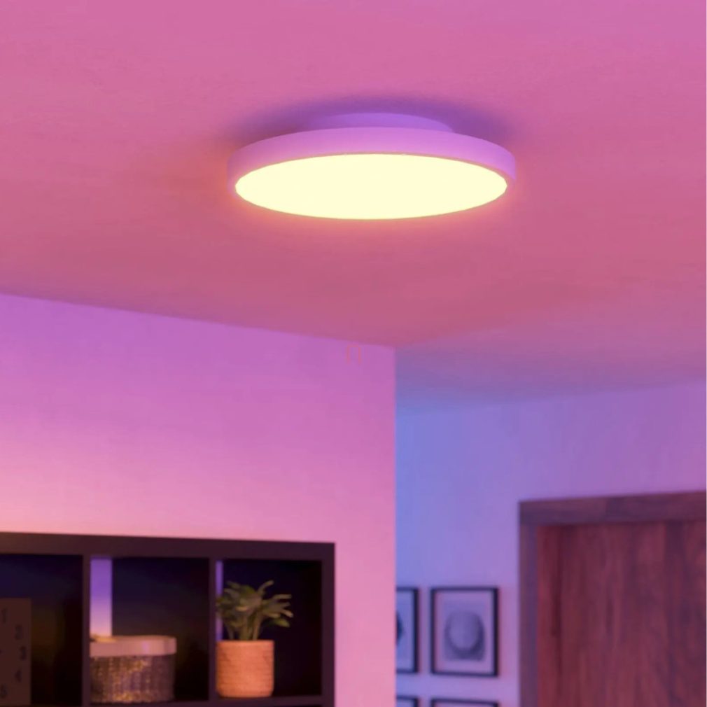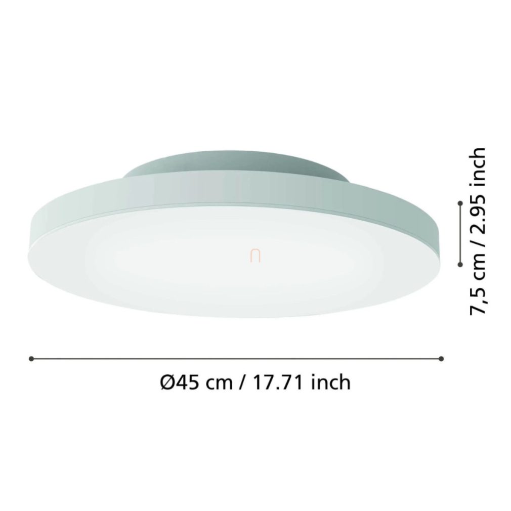 Lampa LED pentru tavan cu intensitate reglabilă Turcona RGBW Eglo 900055 are un modul LED de 22,4 W care oferă un flux luminos de 2490 lumeni. Temperatura culorii lămpii poate fi reglată între 2700 și 6500 Kelvin, permițându-vă să comutați între culori albe reci și calde și culori RGBW. Iluminatul poate fi controlat cu o aplicație și o telecomandă, care nu sunt incluse în pachet. Lampa are un design modern și este fabricată din oțel alb și plastic. Dispozitivul are un diametru de 450 mm, o înălțime de 75 mm, protecție IP20 și clasa energetică F. Produsul conține o sursă de lumină LED și are un soclu pentru modul LED. Este fabricat de EGLO.