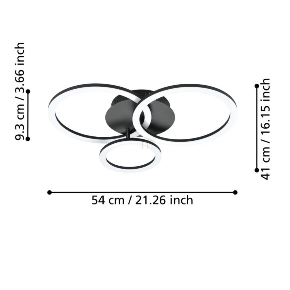Lampa LED reglabilă pentru tavan Parrapos Eglo 900321 este un corp de iluminat modern cu o putere de 33 W, disponibil în culorile alb și negru. Corp de iluminat oferă un flux luminos de 4300 lumeni și are un modul LED cu lumină albă variabilă, care poate fi controlat într-un interval de temperatură de culoare între 3000 și 6500 Kelvin. Luminozitatea este reglabilă și poate fi controlată prin intermediul unei aplicații sau al unei telecomenzi opționale. Lampa de tavan este fabricată din oțel și materiale plastice și are un grad de protecție IP20, fiind potrivită pentru utilizare în interior. Dimensiunile produsului sunt: 545 mm lungime, 445 mm lățime și 90 mm înălțime, cu o greutate de 1,08 kg. Lampa are o sursă de lumină LED încorporată și un soclu pentru modul LED. Fabricat de EGLO.