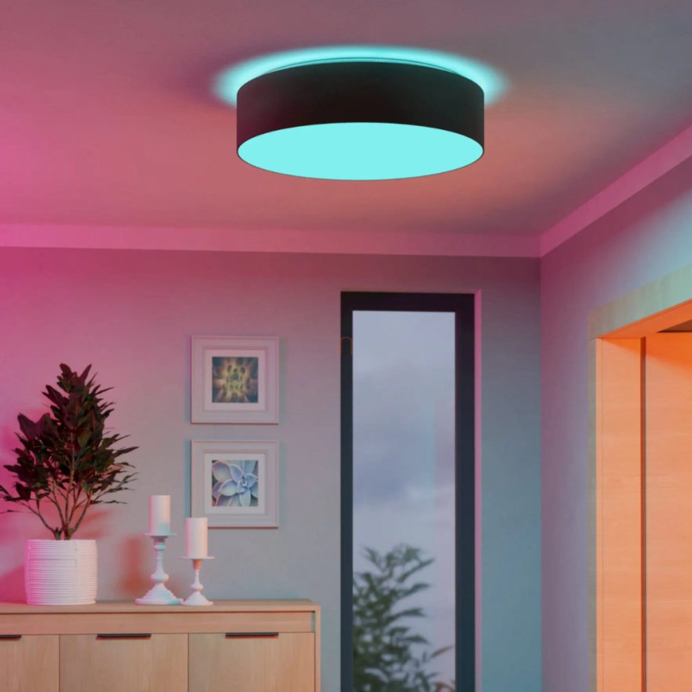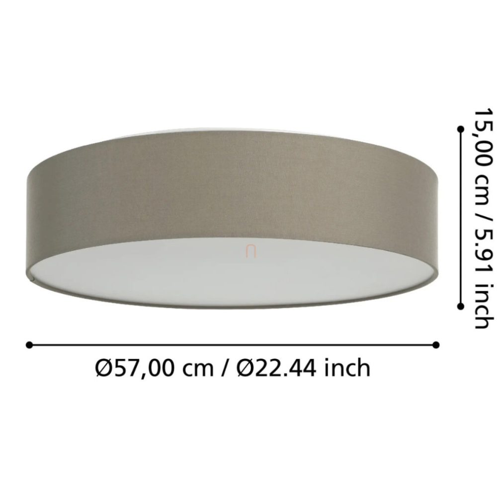 Lampa LED pentru tavan cu intensitate reglabilă Romao RGBW Eglo 900441 funcționează cu un modul LED de 35 W, care oferă un flux luminos de 3500 lumeni. Temperatura culorii lămpii poate fi reglată între 2700 și 6500 Kelvin, oferind lumină albă rece și caldă, precum și iluminare RGBW colorată. Luminozitatea este reglabilă, adică poate fi controlată folosind o aplicație sau o telecomandă opțională. Lampa are un design modern și este disponibilă într-o combinație de culori gri-bej și alb, fiind fabricată din oțel, plastic și țesătură. Modulul LED este încorporat și nu trebuie înlocuit. Produsul are protecție IP20, fiind potrivit pentru utilizare în interior. Diametrul său este de 570 mm, înălțimea de 150 mm, iar greutatea de 4,44 kg. Dimensiunile ambalajului sunt 59 x 59 x 21 cm. Producătorul este EGLO.
