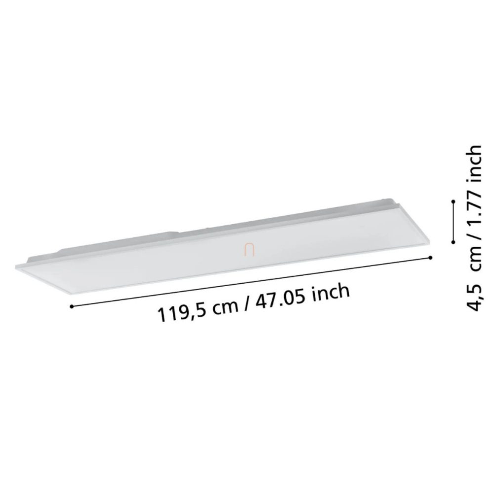 Lampa LED reglabilă pentru tavan Herrora Eglo 99549 are trei module LED integrate de 10,5 wați, care oferă un flux luminos total de 4500 lumeni. Temperatura culorii lămpii poate fi reglată între 2700 și 6500 Kelvin, permițându-vă să setați atât lumina albă rece, cât și cea caldă. Luminozitatea și temperatura culorii pot fi controlate folosind o aplicație sau o telecomandă, dar telecomanda nu este inclusă. Corpul de iluminat este de culoare albă, fabricat în principal din aluminiu și plastic, și are un grad de protecție IP20. Are o lungime de 1200 mm, o lățime de 300 mm și o înălțime de 40 mm, și cântărește 2,97 kg. Produsul, fabricat de EGLO, a fost conceput pentru a îndeplini cerințele iluminatului modern pentru locuințe, cu module LED integrate în corp.