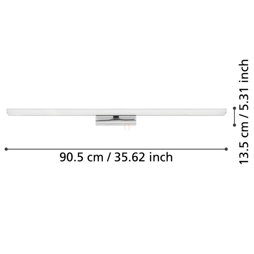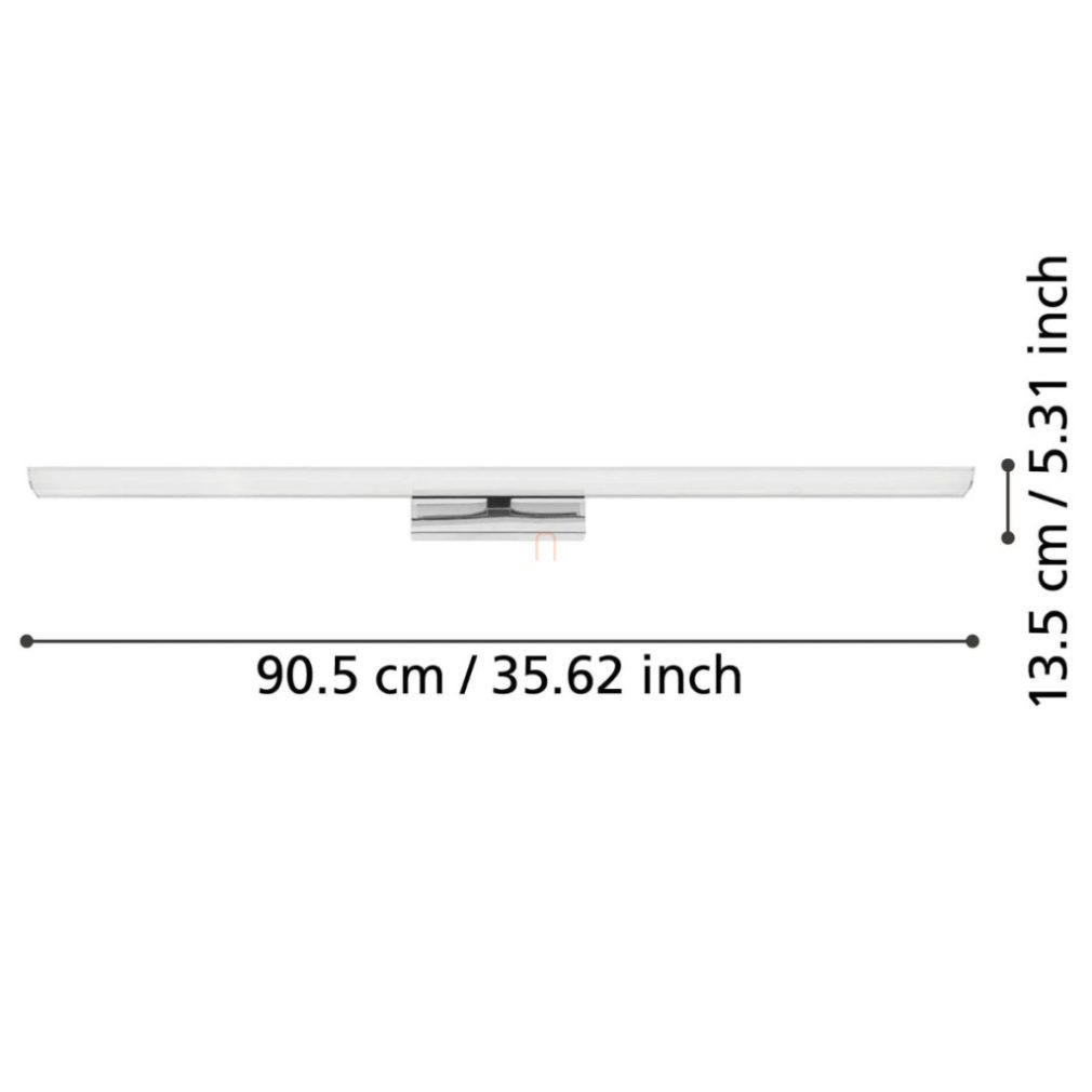 Lampa LED cu oglindă reglabilă are o putere de 21,5 W și un flux luminos de 2750 lumeni, care poate fi reglat între lumină albă și colorată (RGBW). Temperatura culorii poate fi reglată între 2700 și 6500 Kelvin, astfel încât sunt disponibile atât lumina albă rece, cât și cea caldă. Iluminatul poate fi controlat prin intermediul unei aplicații și al unei telecomenzi opționale. Corpul de iluminat are o lungime de 90,5 cm, o lățime de 13,5 cm și o înălțime de 7 cm. Este fabricat din oțel și plastic și are culoarea alb-crom. Modulul LED încorporat este sursa de lumină și are un grad de protecție IP44, ceea ce îl face potrivit pentru utilizarea în băi. Codul logistic al produsului este 900021 și cântărește 1,25 kg. Este fabricat de EGLO.