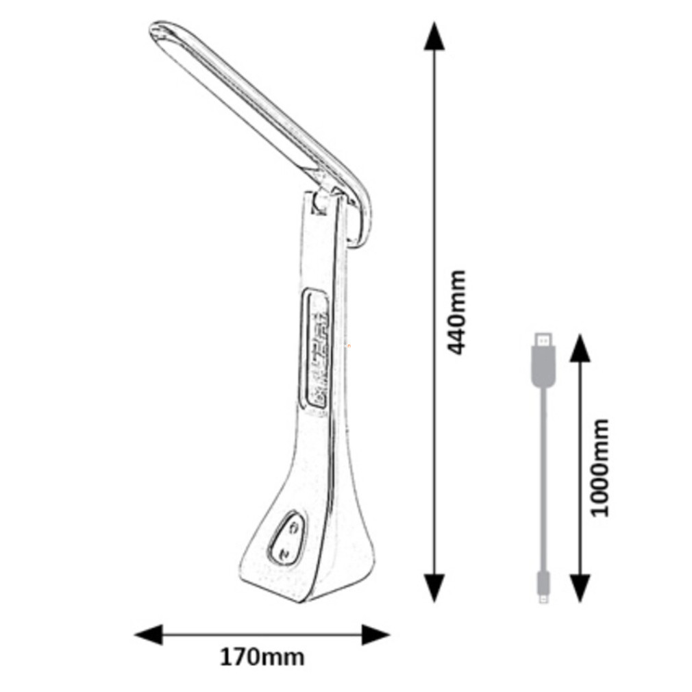 Lampa de masă LED Amato Rábalux 74041 cu afișaj pentru dată este o soluție modernă de iluminat pentru locuință, cu un modul LED încorporat de 7 W. Lampa oferă un flux luminos de 340 lumeni și emite lumină albă rece cu o temperatură de culoare de 4000 K, ideală pentru citit sau lucru. Comutatorul tactil permite controlul precis al intensității luminii, astfel încât iluminatul poate fi ajustat întotdeauna în funcție de nevoile dvs. actuale. Produsul are protecție IP20 și o durată de viață medie de 25.000 de ore. Lampa este disponibilă în culorile alb și negru și este fabricată din plastic rezistent. Afișajul de dată încorporat oferă informații practice pentru utilizarea zilnică, iar designul reglabil permite modificarea ușoară a direcției luminii. Dimensiunile sale compacte – 170 mm lungime, 440 mm diametru și lățime – o fac potrivită pentru a fi așezată pe un birou sau pe noptieră.