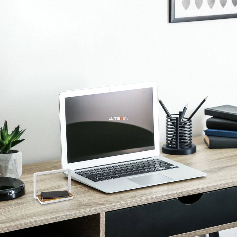 Lampa LED de birou cu încărcător de telefon Buldus Rábalux 76005 oferă o soluție modernă pentru iluminatul casei sau biroului. Designul său compact, cu un diametru de 14 cm, permite amplasarea într-un spațiu redus. Lampa are un modul LED încorporat de 4 W care oferă o putere luminoasă de 160 lumeni, cu o temperatură de culoare albă caldă de 3000 K. Comanda tactilă și senzorul de control al luminozității permit reglarea precisă a intensității luminii. Portul USB încorporat permite încărcarea ușoară a telefonului, făcând lampa un accesoriu funcțional pentru orice birou. Corpul lămpii este fabricat din plastic și lemn într-o combinație de culori alb mat, cu protecție IP20. Are o durată de viață medie de 20.000 de ore, dimensiuni de 210 mm lungime și 145 mm înălțime și cântărește 0,37 kg. Produsul conține o sursă de lumină LED, astfel încât nu sunt necesare becuri suplimentare.