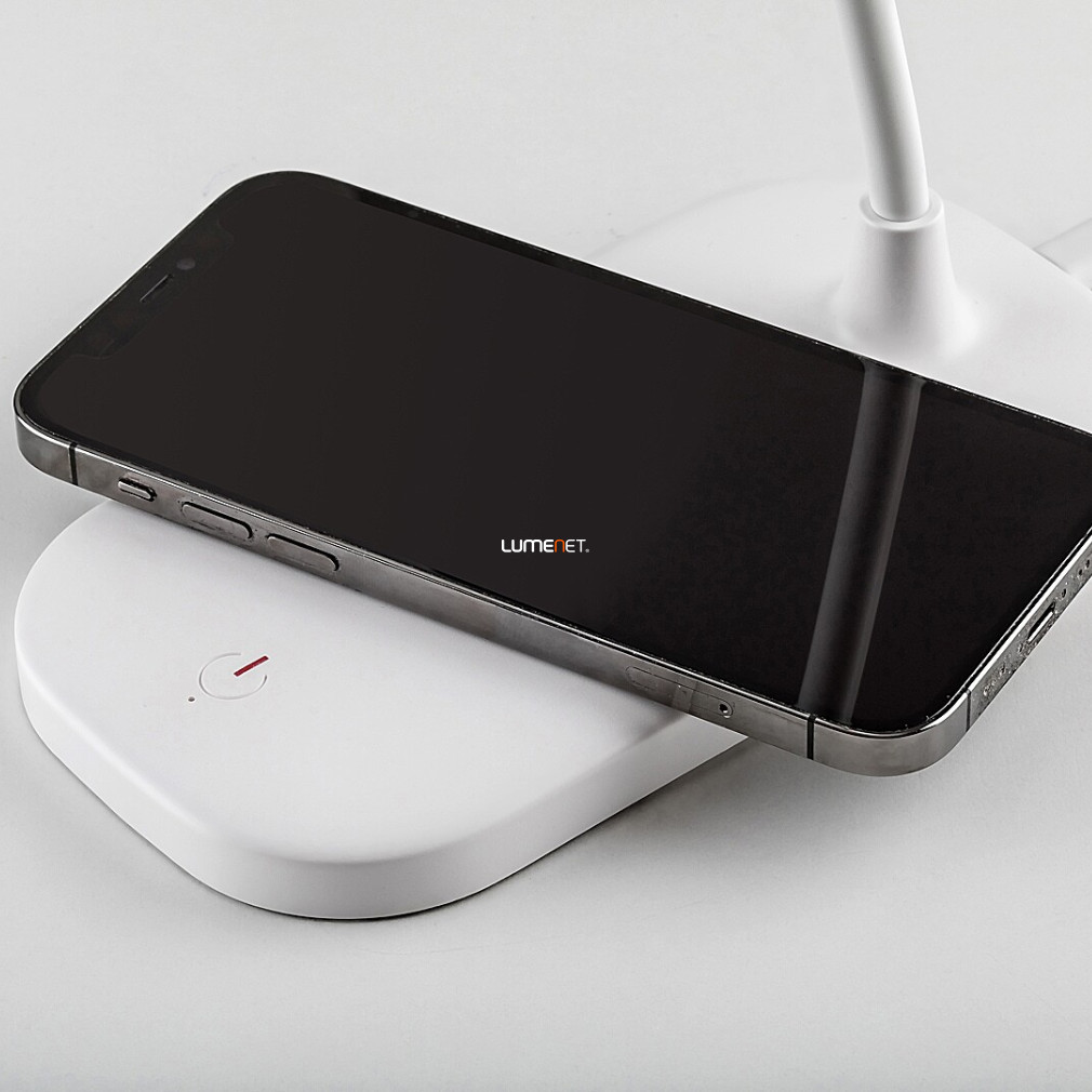 Lampă de birou LED albă cu încărcător de telefon, 29 cm - Hardin Rábalux 74013, USB, control al luminozității, comutator tactil, încărcător de telefon wireless, 2700-6000 K, 210 lm, 5 W
