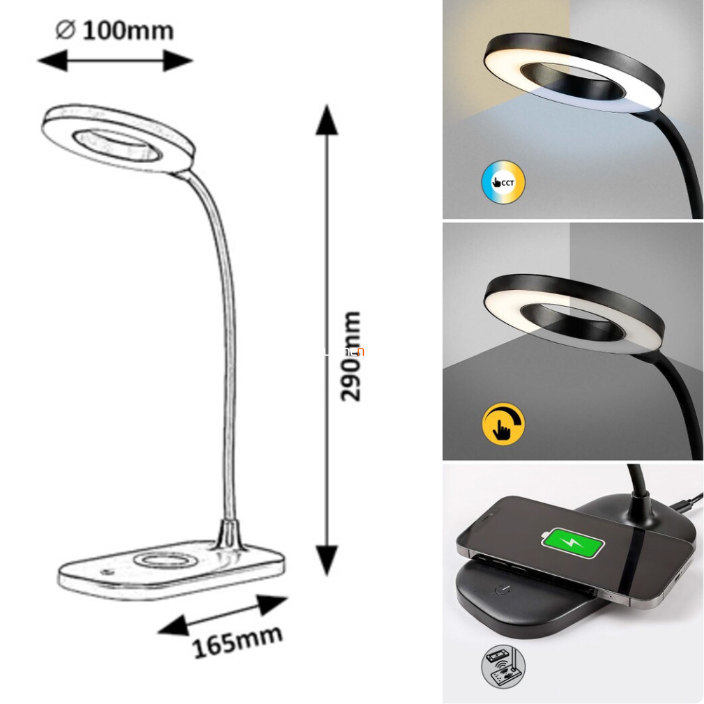 Lampă LED de birou cu încărcător pentru telefon 29 cm - Hardin Rábalux 74014, USB, control al luminozității, comutator tactil, încărcător wireless pentru telefon, 2700-6000 K, 210 lm, 5 W
