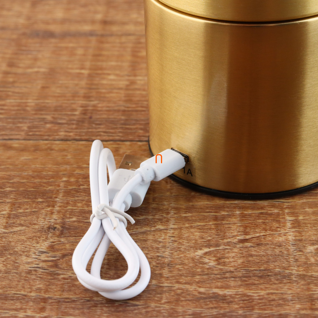 Lampă LED de birou reglabilă, culoare alamă, reîncărcabilă, 19 cm - Lunki Globo 21010M, alimentată cu baterii, portabilă, cu intensitate reglabilă, cu cablu de 0,5 m, 2700-6500-4000 K, 185 lm, 2,5 W, 5 V