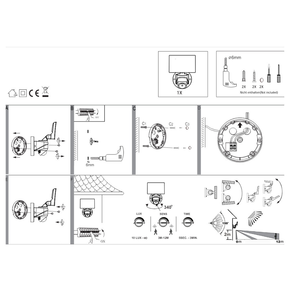Aplică de perete cu senzor de mișcare/lumini pentru exterior