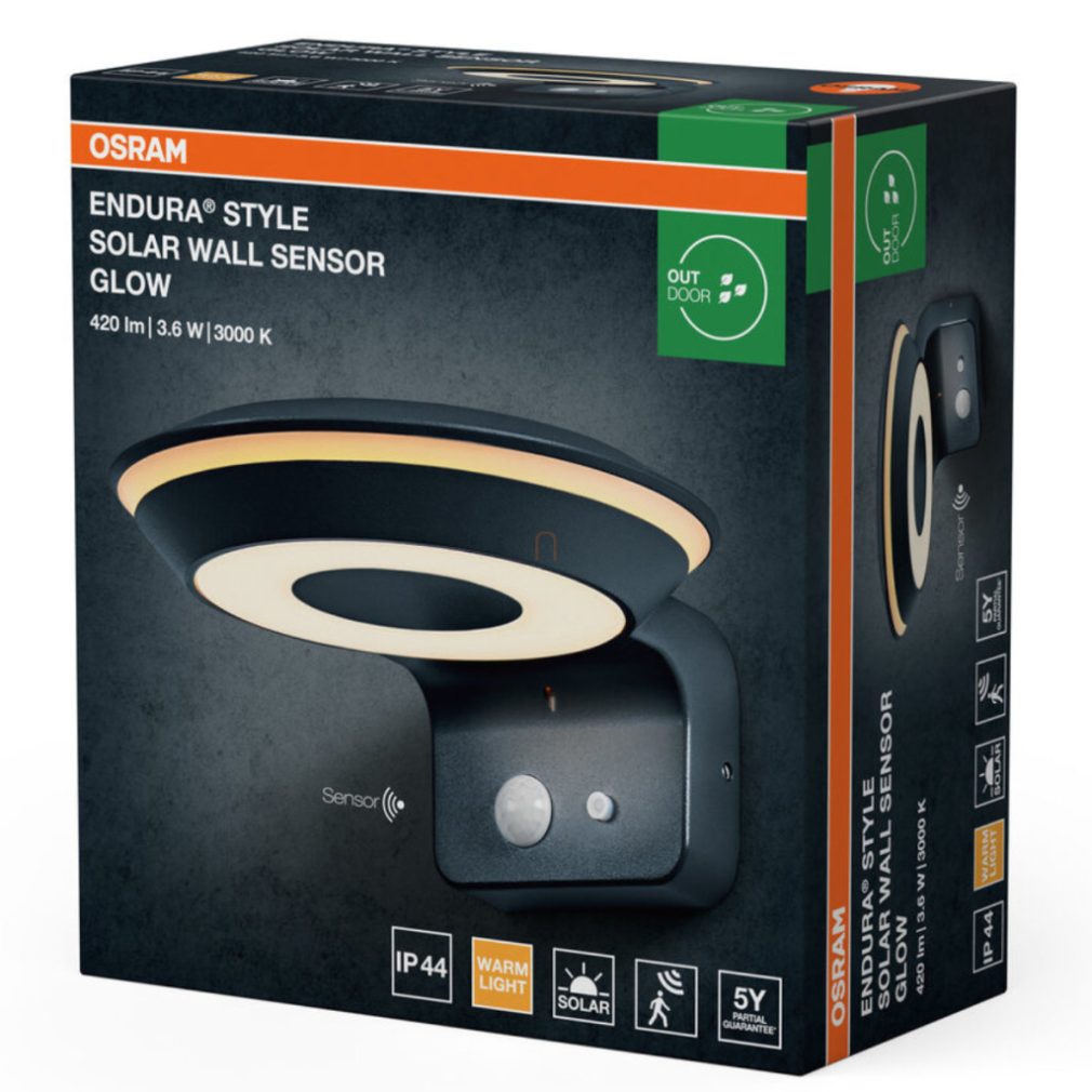 Lampă LED de exterior Osram Endura Style Glow, alimentată cu energie solară, cu senzor de mișcare