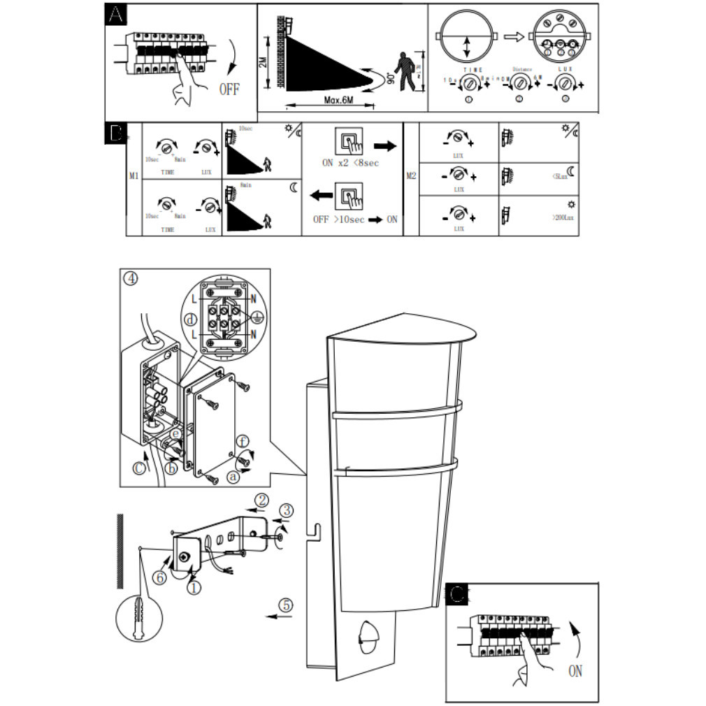 Aplică de perete cu senzor de mișcare/lumini pentru exterior