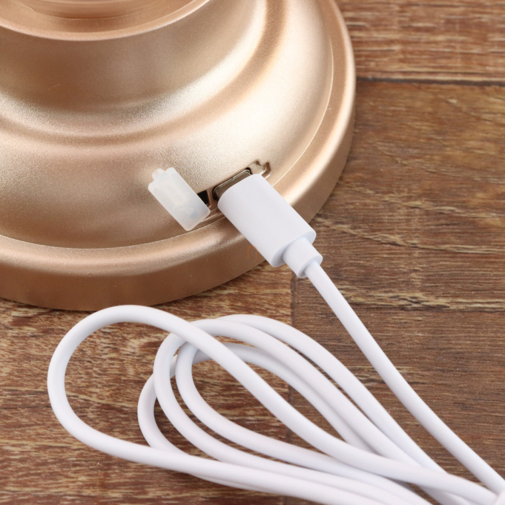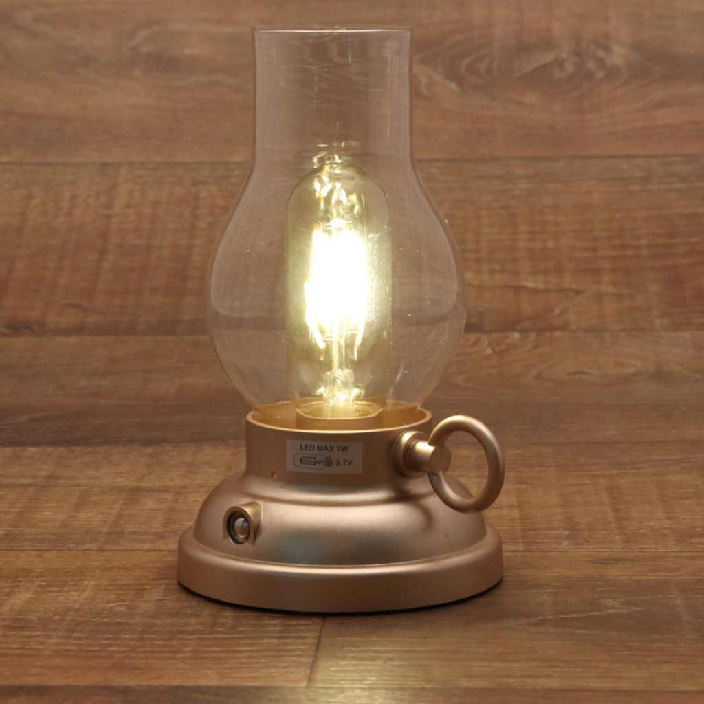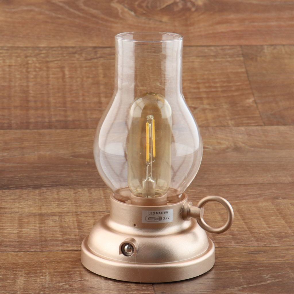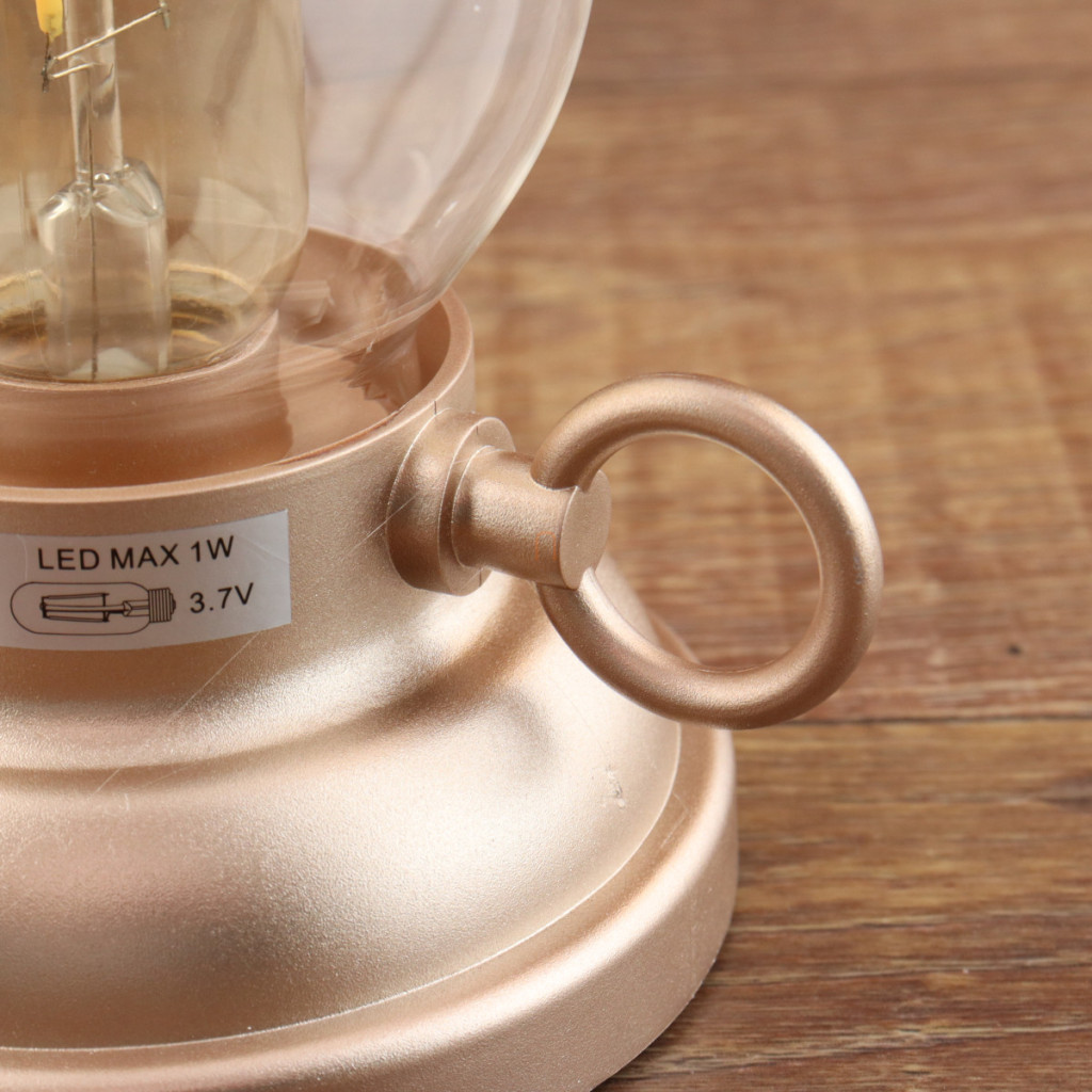 Lampă LED de masă cu activare tactilă, reîncărcabilă, efect de lampă cu petrol, culoare șampanie - Petro Globo 58016CH - luminozitate reglabilă, 2700 K, 65 lm, 1 W, cablu de 1 metru, alimentată cu baterii