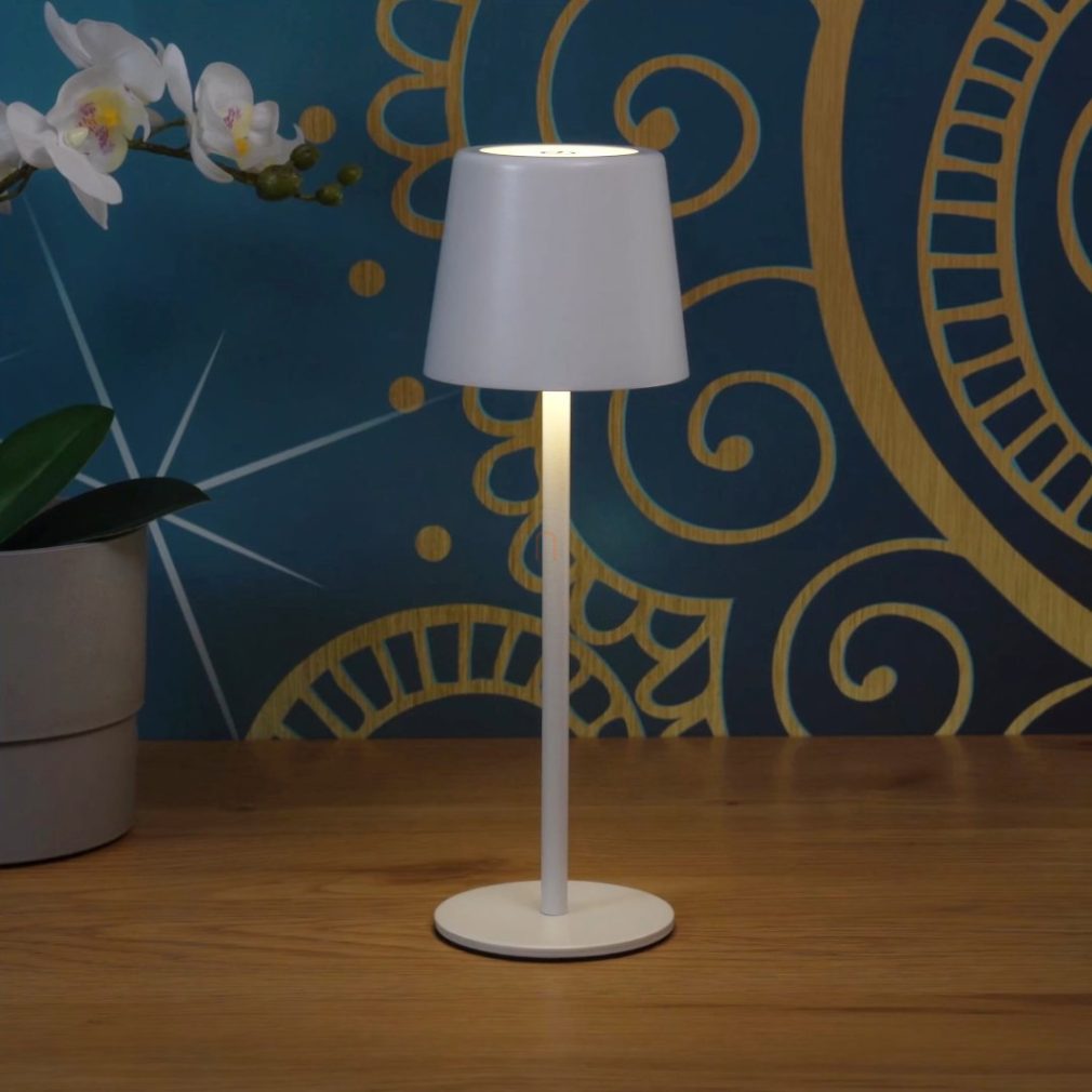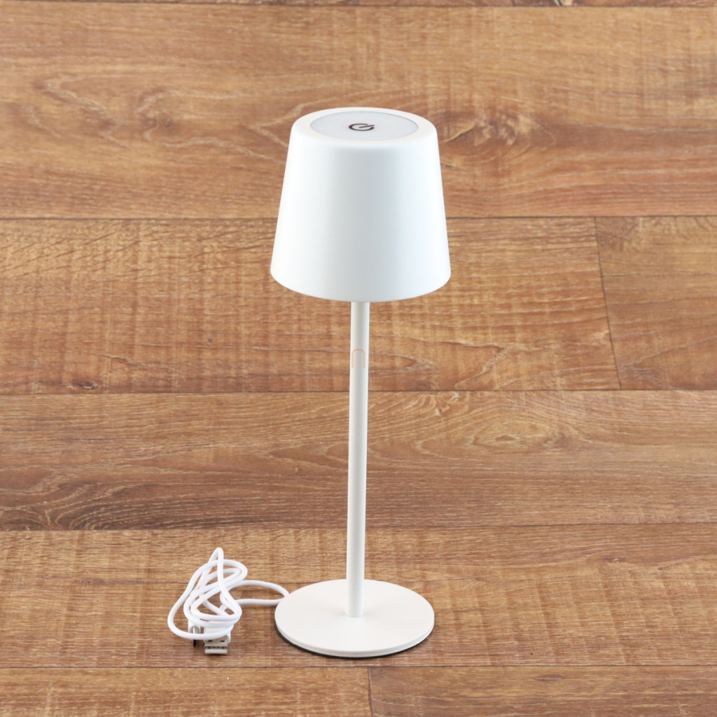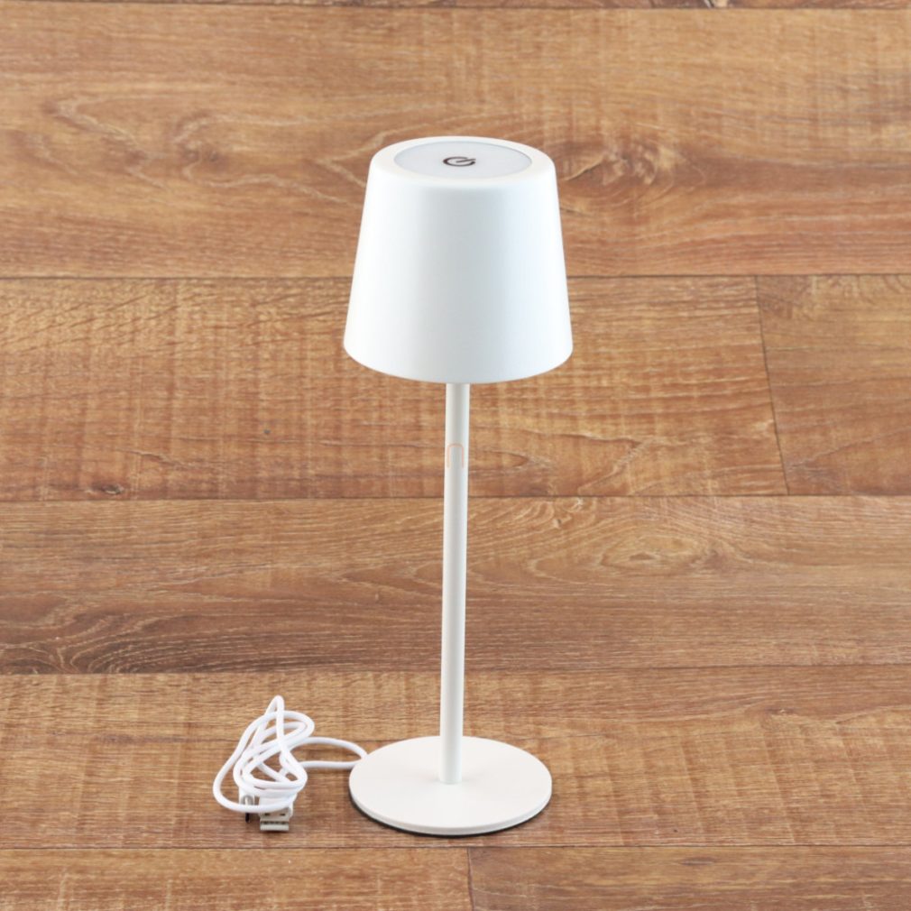 Lampă LED de masă cu control tactil, 28 cm, reîncărcabilă, albă - Vancouver Globo 58482W - luminozitate reglabilă, 3000/4500 K, 50 lm, 1,2 W, cablu de 0,8 metri, alimentată cu baterii