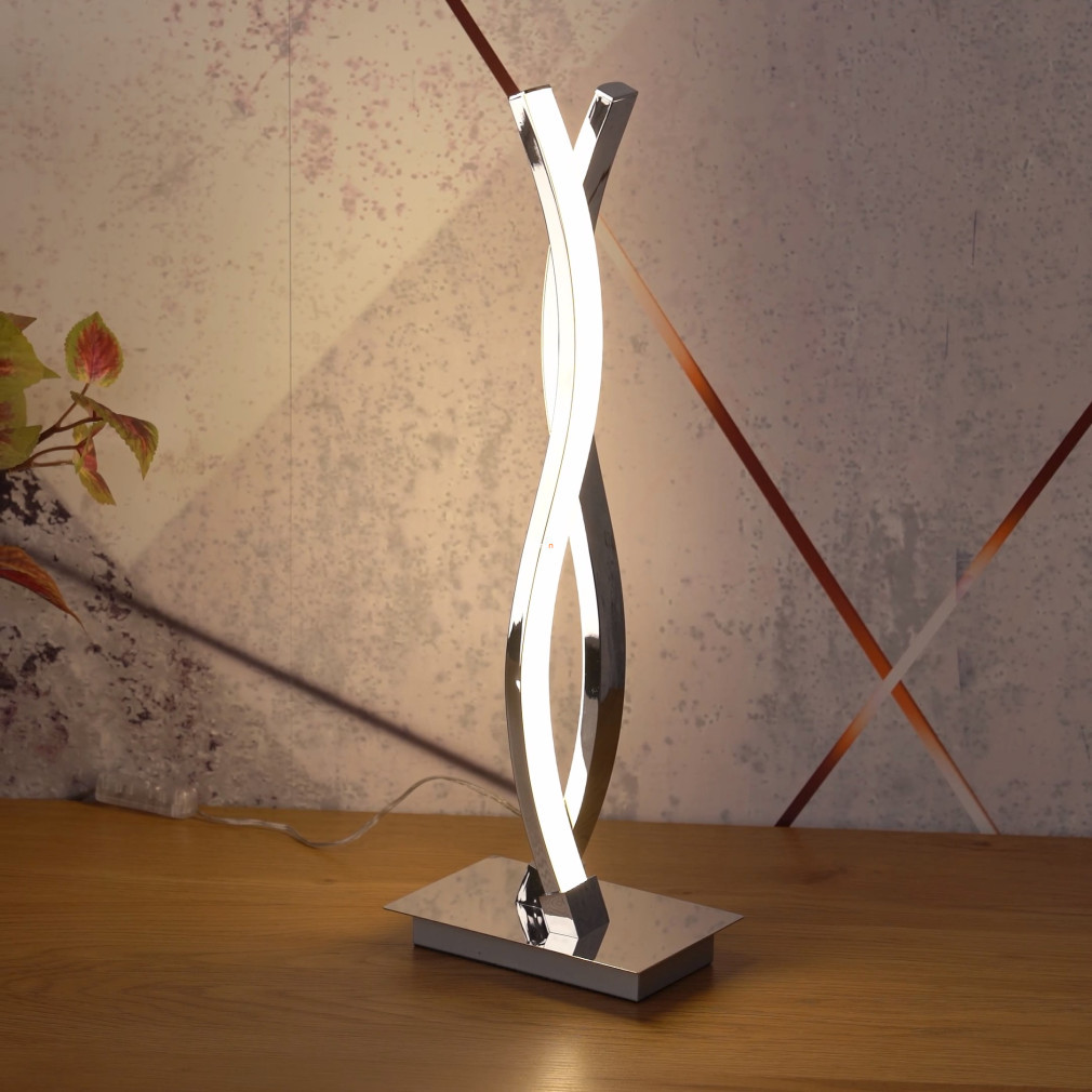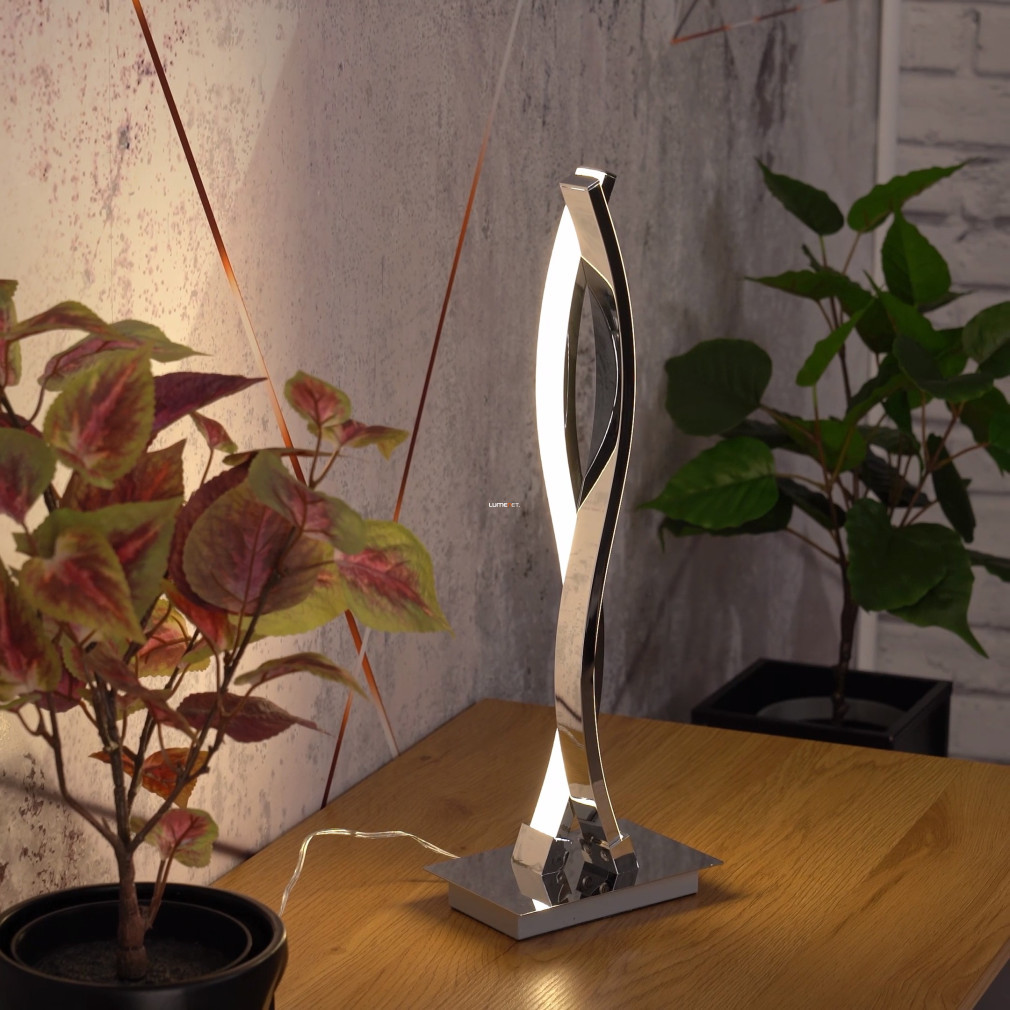 Lampa de masă LED Wavy 46 cm - Lasana 2 Eglo 96105 este o lampă de masă în stil modern, realizată din oțel și aluminiu, cu un modul LED încorporat. Lampa are o putere de 10 W și un flux luminos de 1440 lumeni, oferind o iluminare eficientă. Lumina albă caldă, cu o temperatură de culoare de 3000 K, creează o atmosferă plăcută în orice încăpere. Finisajul argintiu și designul ondulat conferă lămpii un aspect elegant. Lampa este controlată de un întrerupător cu cablu și are un grad de protecție IP20. Dimensiuni: 460 mm înălțime, 160 mm lungime, 100 mm lățime, greutate 1,05 kg. Produsul include sursa de lumină LED.