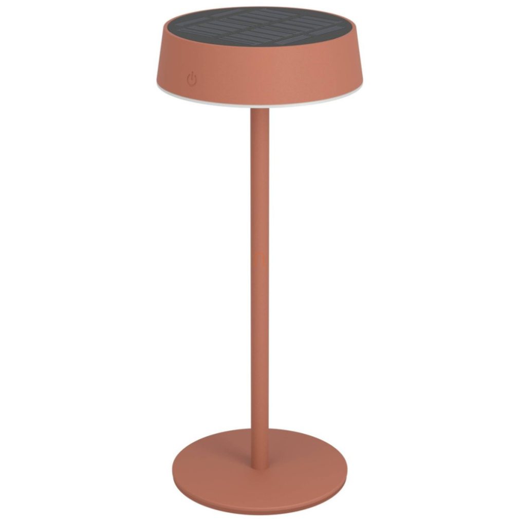 Lampă LED de masă pentru exterior, alimentată cu energie solară, reglabilă, roșie, 31 cm, comutator tactil, cu priză USB - Simeri Eglo 75879, 250 lm, 3000-6000 K, temperatură și luminozitate reglabile, 3 W, 5 V, IP44