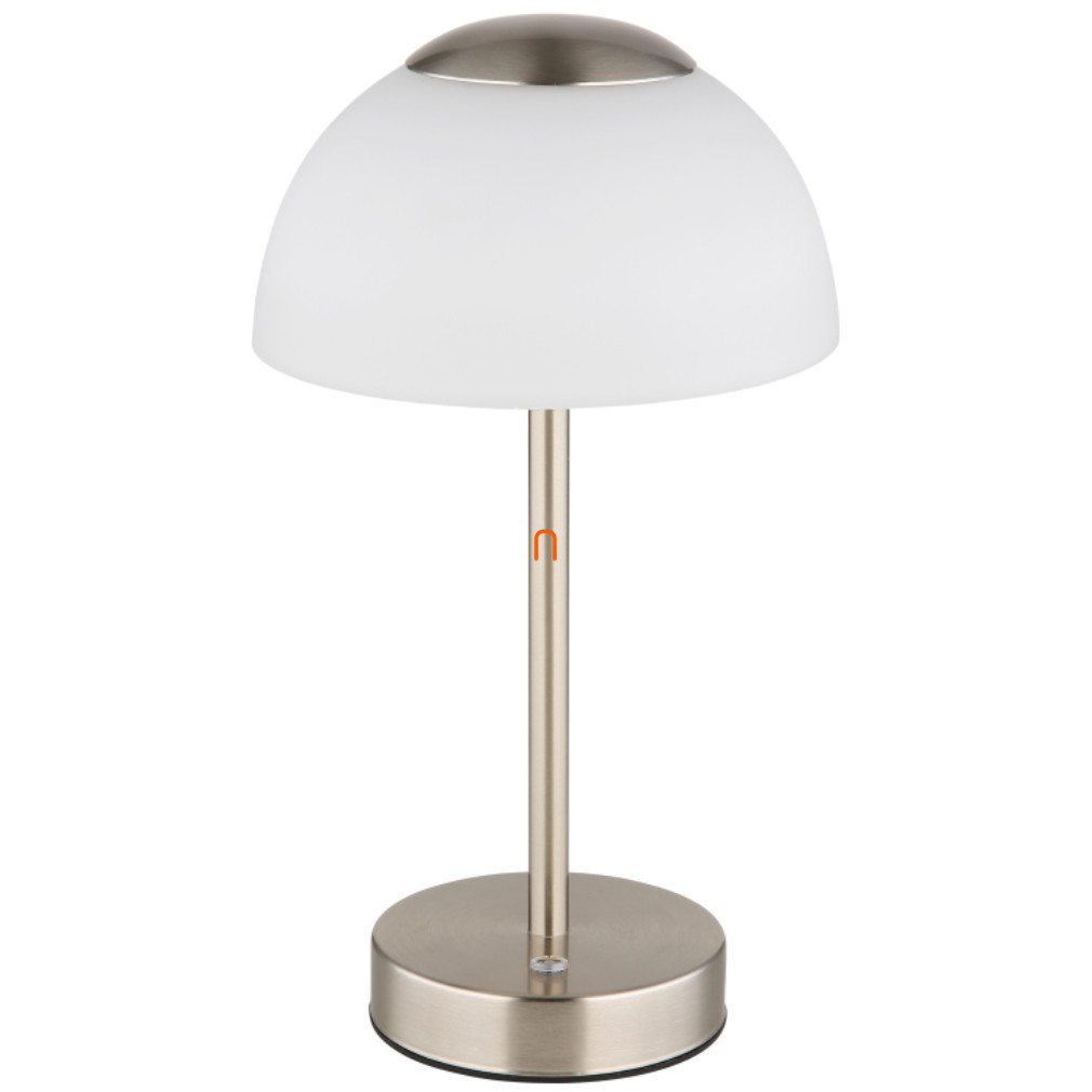 Lampa LED reglabilă pentru masă Sarima Globo 21014N are un design modern, de culoare argintie, și o înălțime de 31 cm. Abajurul este realizat din sticlă și metal, într-o combinație de culori nichel și opal. Modulul LED încorporat oferă o putere de 2,5 W și o putere luminoasă de 150 lumeni, iar temperatura culorii poate fi reglată între 2700 K, 4000 K și 6500 K, permițându-vă să alegeți între lumină albă caldă, neutră sau rece. Luminozitatea este reglabilă în mod continuu, permițându-vă să setați cu precizie nivelul de iluminare dorit. Datorită funcționării pe baterie, lampa este portabilă, iar bateria de 1800 mAh asigură o durată de funcționare mai lungă. Pachetul include un cablu de 0,5 metri pentru încărcare. Produsul are un grad de protecție IP20, fiind potrivit pentru utilizare în interior. Lampa are un diametru de 150 mm, cântărește 0,54 kg, iar ambalajul măsoară 18 x 18 x 32 cm. Produsul este fabricat de Globo.