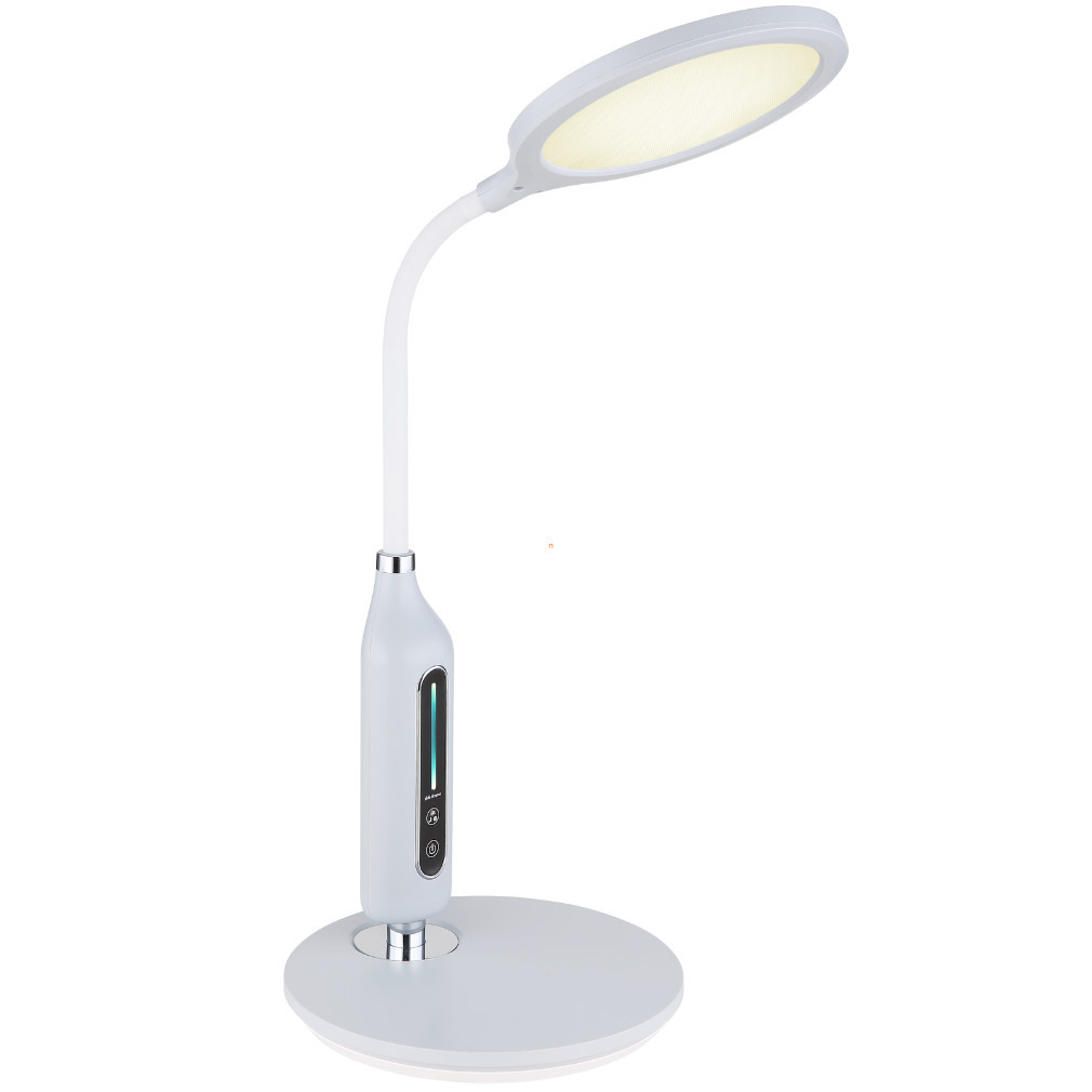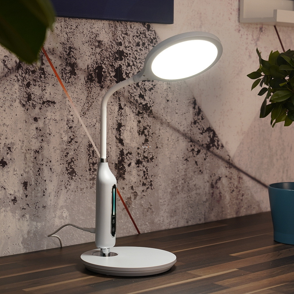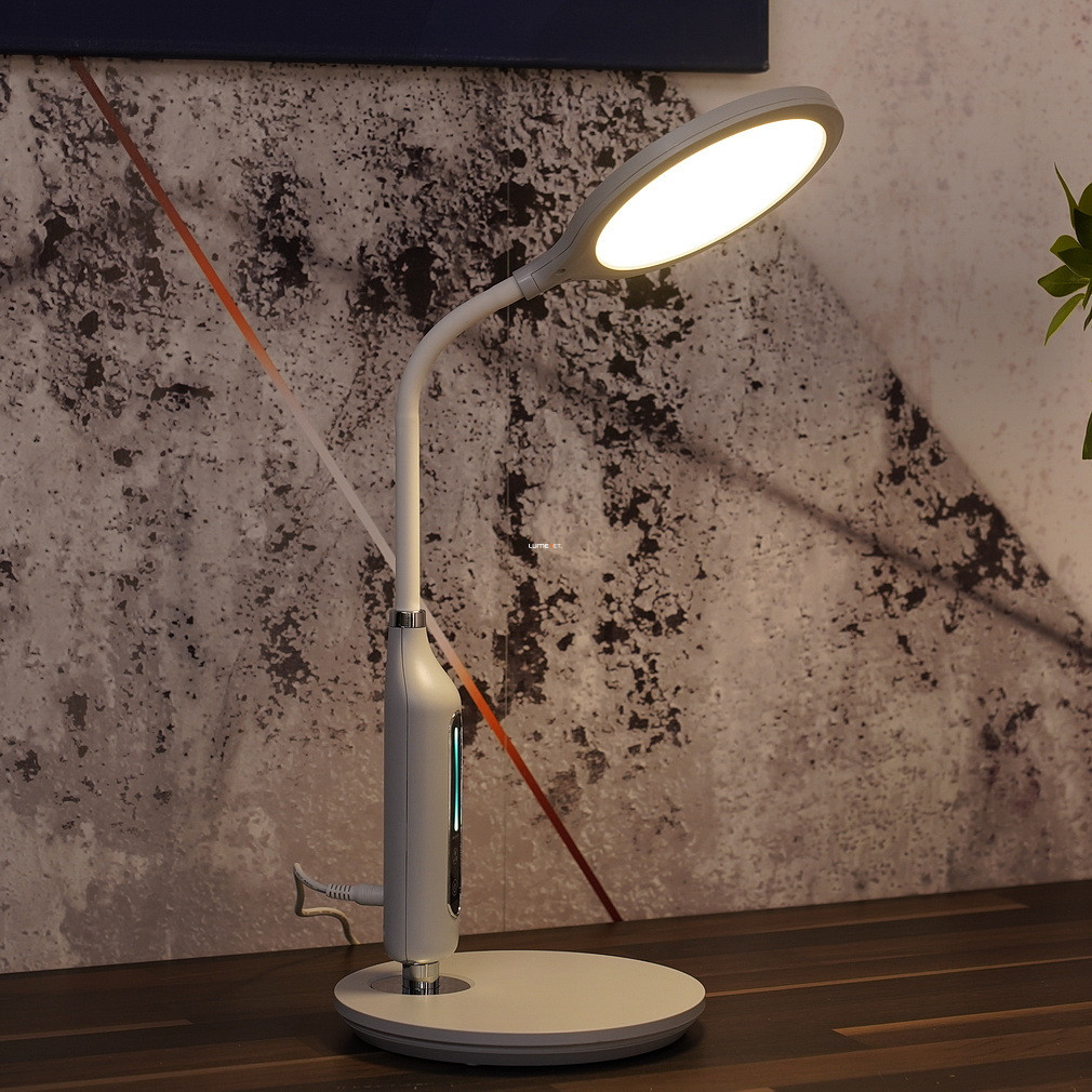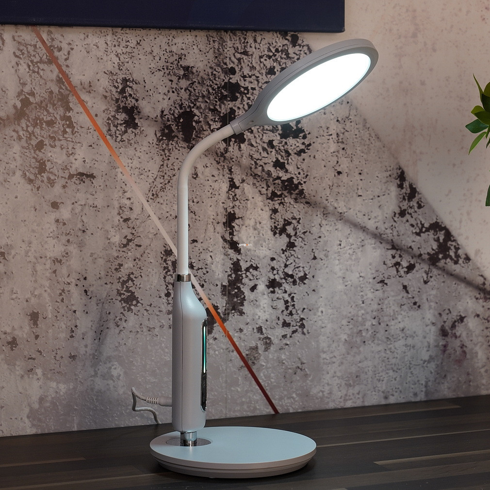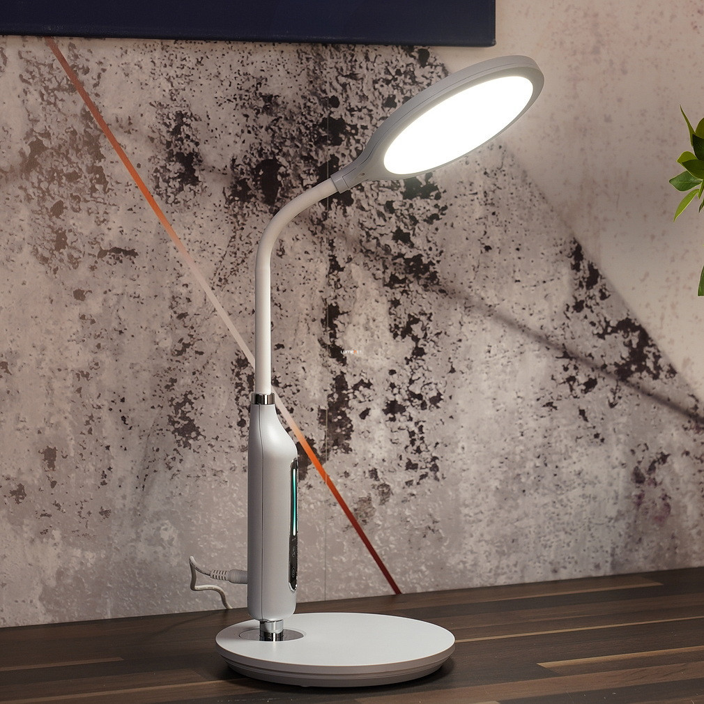 Lampa LED reglabilă pentru masă Fruggy Globo 58435G are un design modern, de culoare gri mat, și o înălțime de 40 cm. Lampa are un modul LED de 9 W care oferă un flux luminos de 530 lumeni. Luminozitatea și temperatura culorii pot fi reglate între 3000, 4000 și 6500 Kelvin, permițându-vă să produceți lumină albă caldă, neutră sau rece. Produsul are o funcție de memorie care reține ultimele setări de lumină. Corp de iluminat are protecție IP20, este fabricat din plastic și funcționează direct de la o sursă de alimentare de 230 V. Datorită dimensiunilor sale compacte (lungime: 300 mm, lățime: 185 mm, înălțime: 407 mm), se potrivește bine pe birouri, iar sursa de lumină LED este încorporată, astfel încât nu este nevoie să înlocuiți becul. Produsul cântărește 0,83 kg, iar dimensiunile ambalajului sunt 20 x 5 x 34 cm. Lampa este fabricată de Globo.