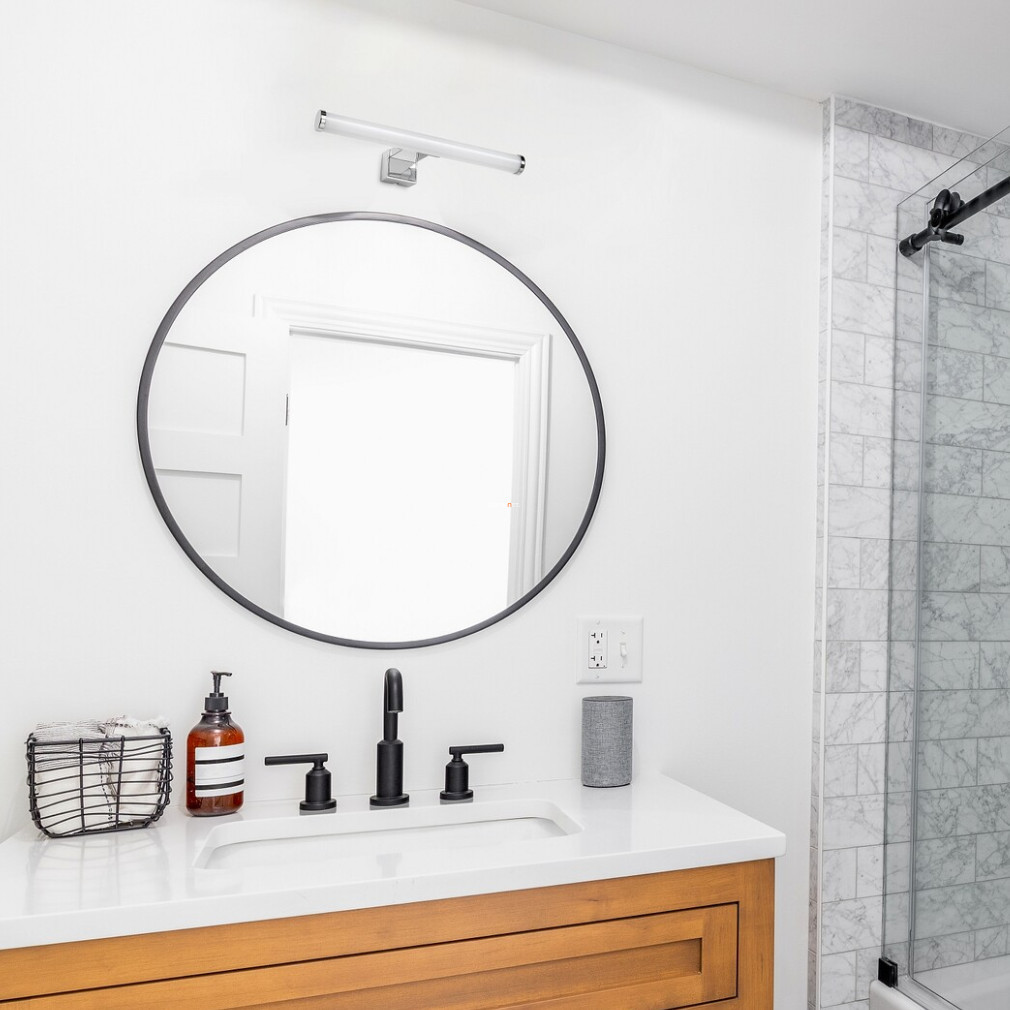 Lampa LED de perete pentru baie, cu lumină albă rece și o dimensiune de 30 cm, este combinația perfectă între design modern și funcționalitate. Lampa este fabricată din plastic, ceea ce o face ușoară și durabilă, iar combinația de culori crom și alb îi conferă un aspect elegant. Lampa are un flux luminos de 530 lumeni, care asigură o iluminare adecvată în baie, în timp ce temperatura de culoare de 4000 Kelvin oferă o lumină albă rece, conferind spațiului un aspect proaspăt și curat. Corpului de iluminat are un consum de energie de 5 W, ceea ce îl face o soluție eficientă din punct de vedere energetic, iar datorită modulului LED încorporat, nu este necesară o sursă de lumină separată. Clasa de protecție IP44 asigură că lampa este rezistentă la stropirea cu apă, făcând-o o alegere ideală pentru încăperi umede, cum ar fi băile. Durata medie de viață este de 20.000 de ore, garantând fiabilitate pe termen lung. Lampa are o lungime de 300 mm și un diametru de 30 mm, asigurând o dimensiune compactă care se potrivește cu ușurință în orice baie. Instalarea este simplă, astfel încât să vă puteți bucura rapid și ușor de iluminatul modern în casa dvs.