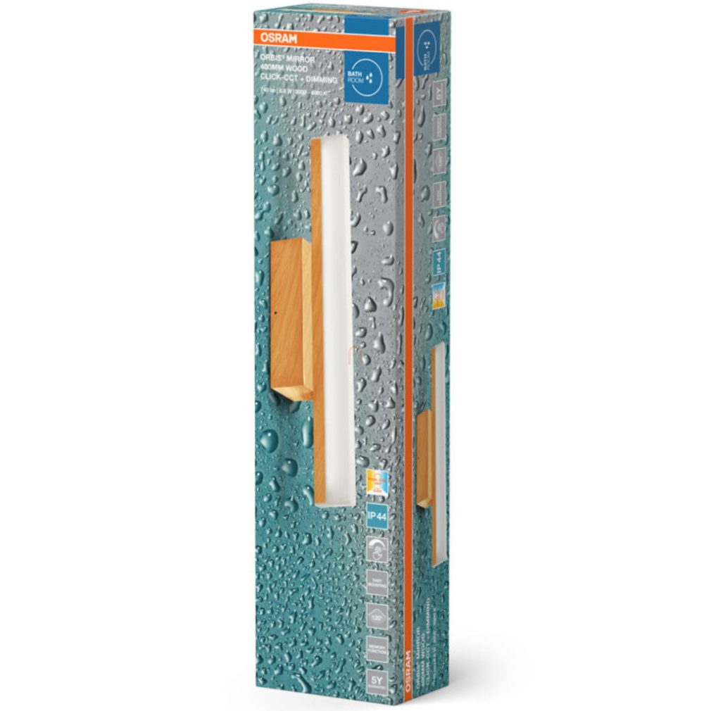 Lampă LED de perete reglabilă pentru baie Osram Orbis Mirror, 40 cm, efect lemn