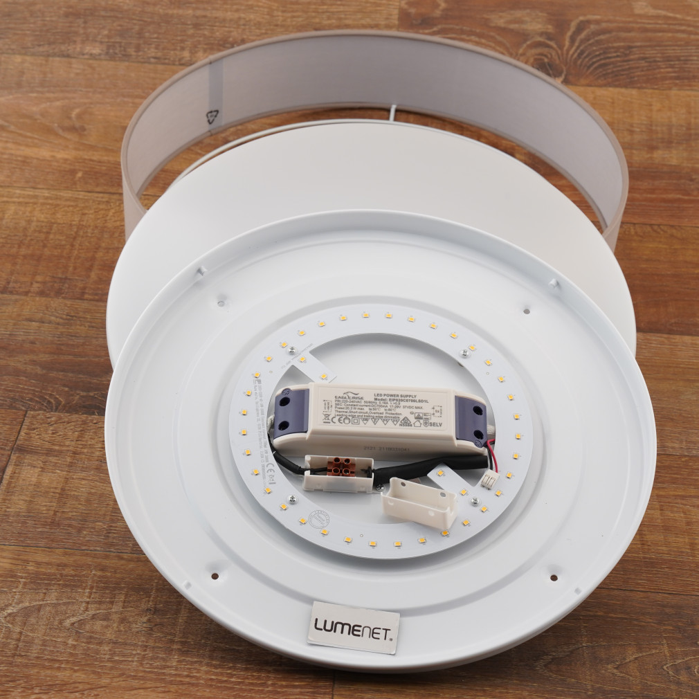 Lampa LED de tavan Palomaro Eglo 96539 are un modul LED integrat cu o putere de 18 W, care oferă un flux luminos de 2000 lumeni la o temperatură de culoare albă caldă de 3000 K. Lampa are un design modern, într-o combinație de culori alb și gri, și este fabricată din plastic și țesătură. Produsul are un diametru de 405 mm, o înălțime de 100 mm și o greutate de 1,89 kg. Are un grad de protecție IP20, fiind potrivit pentru utilizare în interior. Lampa este livrată cu un modul LED inclus în pachet, care nu necesită o sursă de lumină separată. Producătorul este EGLO, iar codul logistic al produsului este 96539.