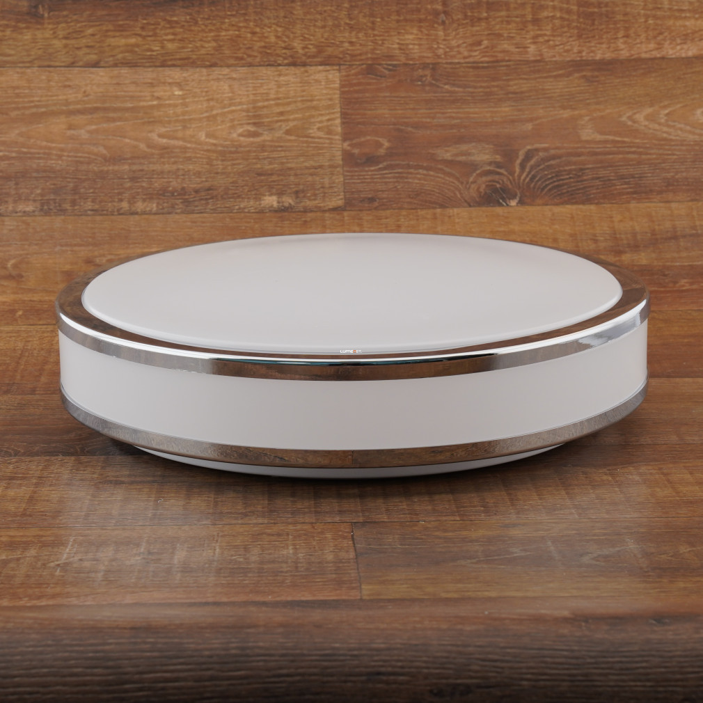 Cu designul său modern și capacul din plastic alb și crom, lampa LED de tavan Palermo Eglo 95684 este alegerea ideală pentru soluții de iluminat pentru locuințe. Corpului de iluminat are un modul LED încorporat de 24 W care oferă un flux luminos de 2400 lumeni cu o temperatură de culoare alb cald (3000 K). Modulul LED garantează o durată lungă de viață și un consum energetic eficient, oferind în același timp o distribuție uniformă a luminii. Corp de iluminat, cu un diametru de 410 mm și o înălțime de 60 mm, are protecție IP20, fiind potrivit pentru utilizare în interior. Dimensiunile ambalajului produsului sunt de 42 cm lungime, 42 cm înălțime și 11 cm lățime, cu o greutate de 1,21 kg. Lampa de tavan se potrivește în interioarele moderne, este ușor de instalat și, datorită tehnologiei LED, nu necesită înlocuirea sursei de lumină.
